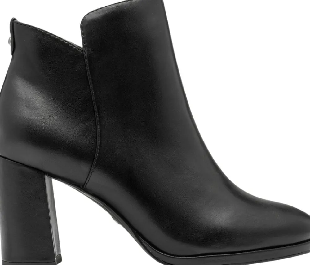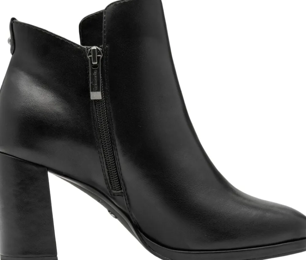Kort let støvle i sort glat mat materiale. Blokhæl på 80mm skafthøjde på 10 cm. Indvendig lynlås og der er antislide og antichok i hælen samt Touch it effekt i dæksålen
