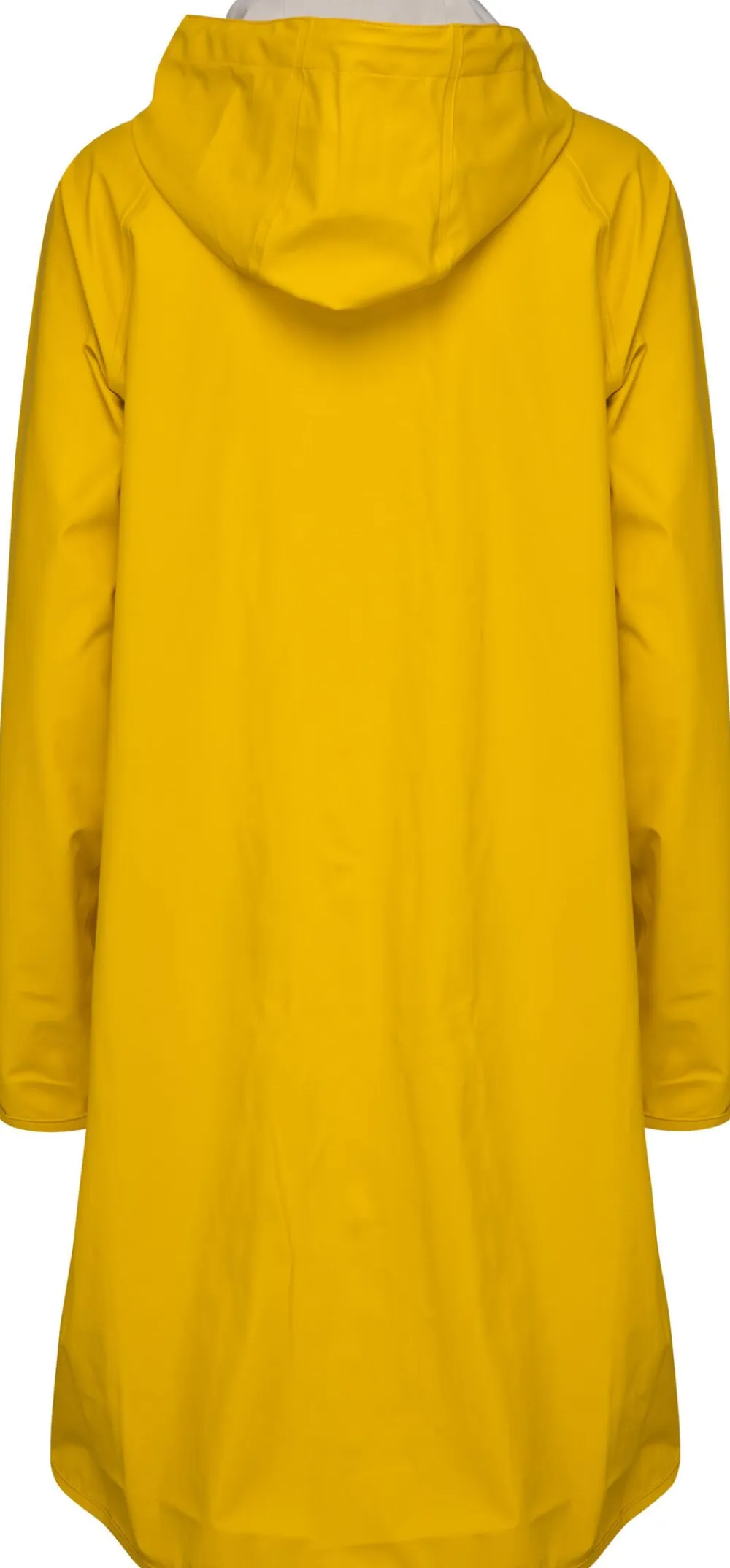 En feminin A-formet regnfrakke med Løs pasform under knæet. Regnfrakken har et diskret Ilse Jacobsen Hornbæk-logo præget på venstre ærme. Hætten er aftagelig og fastgjort med en vejrbestandig strop i kunstlæder. Stilen har sidelommer med flapper, smarte slidser i sidesømmene med trykknapper, knaplukning ved håndleddet og en 2-vejs YKK-lynlås midt foran. Indvendigt har stilen en ren og fin finish med et logobånd. Kvaliteten er en let og subtil vandtæt gummibelagt PU med polyester tricot på bagsiden, og alle sømme er dobbeltsvejsede. Stilen fås i et bredt udvalg af både klassiske og sæsonbestemte farver. Sammensætning: 100 % polyester trikot med PU-belægning. Funktionalitet: B/P 5000 mm
