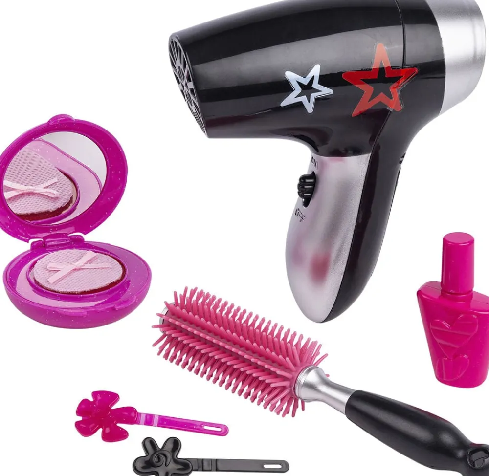 Beautysalon Inkl batteridrevet hårtørrer og andet tilbehør I alt 7 dele Bruger 2 stk AAA-batterier