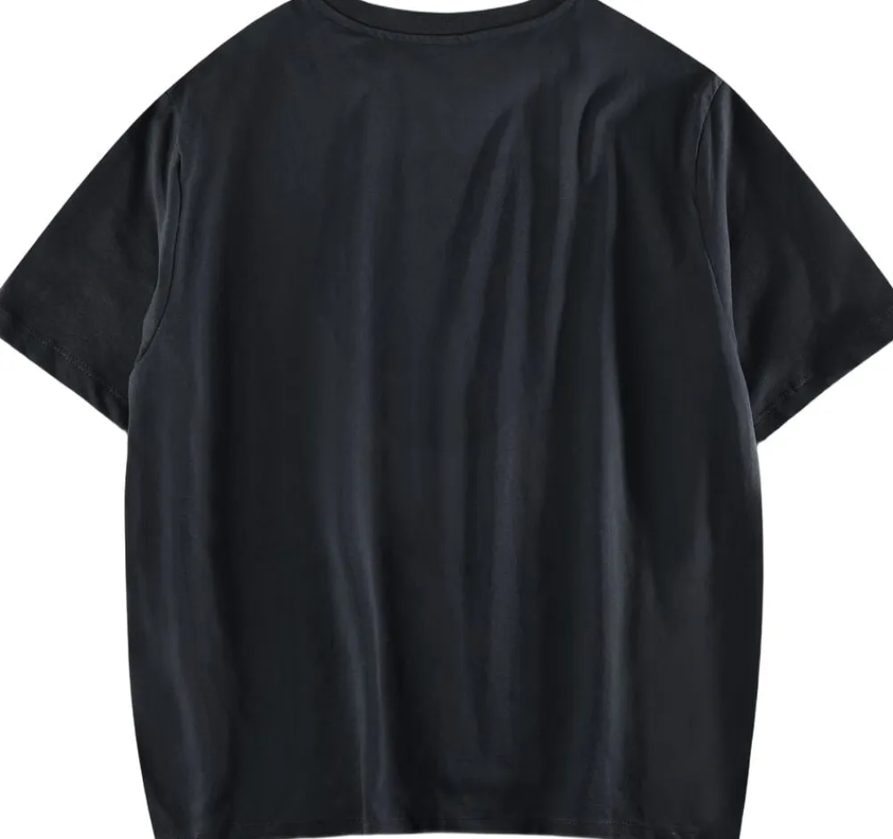 – Praktisk design: Den klassiske crewneck-halsudskæring og korte ærmer giver en afslappet, men stilfuld silhuet, der passer til enhver garderobe.