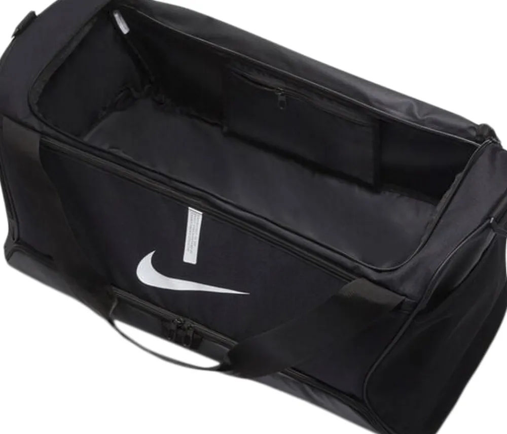Den Nike Academy Team Sportstaske i medium størrelse er din pålidelige følgesvend til træning og aktiviteter. Med dens rummelige design på 60 liter får du masser af plads til at opbevare dit træningstøj, sko og udstyr. Tasken er udstyret med holdbare håndtag og en justerbar skulderrem, der gør det nemt at bære den på forskellige måder. Det vandafvisende materiale beskytter dine ejendele mod fugt og let regn, og det ventilerede rum hjælper med at holde dine svedige genstande adskilt fra resten af dit udstyr. Uanset om du er på vej til fitnesscentret, sportsbanen eller en weekendudflugt, er Nike Academy Team Sportstaske den perfekte følgesvend til at organisere og transportere dine ting med stil og funktionalitet.