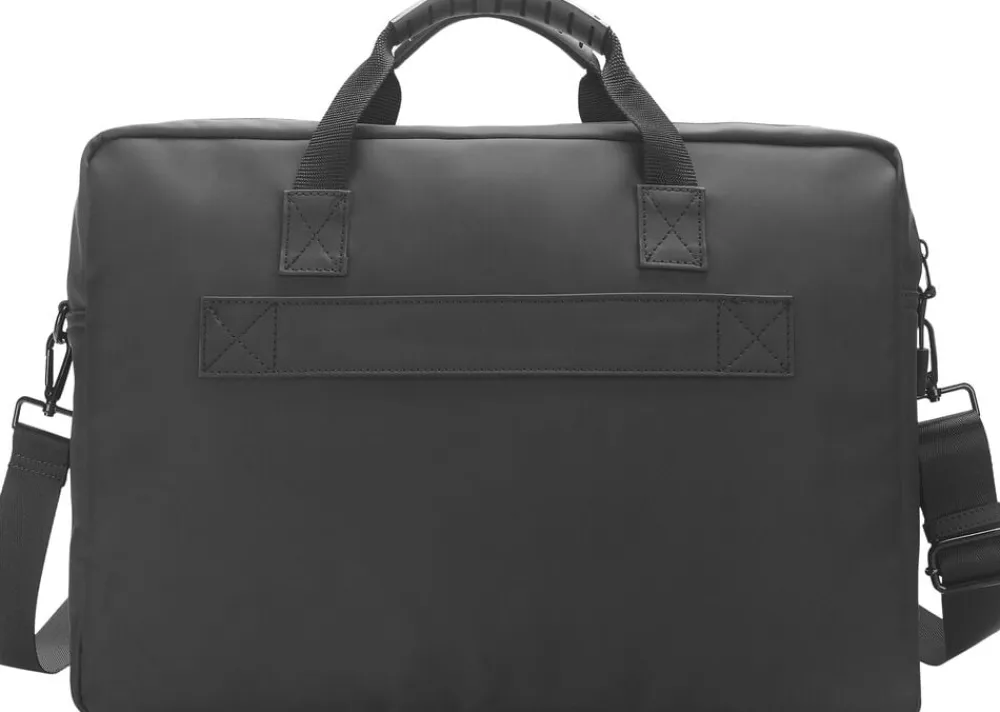 Niki portfolio fra serien Senna er en smart portfolie i vandafvisende nylon. Portfolien har på fronten en lynlåslomme og på bagsiden en strop så man let kan montere tasken på en trolly. Portfolioen har 2 seperat rum, som lukkes med lynlås itoppen. Indvendig findes der en foret lomme med plads til en laptop og i det andet rum en lynlåslomme til småting samt små stiklommer til telefon, kuglepenne mc. Portfolien kan både bæres i de to hanke eller i den lange regulerbare rem. Holder tør ved moderat regn over en kort periode eller let regn over en længere periode. Vandsøjletryk >5000.