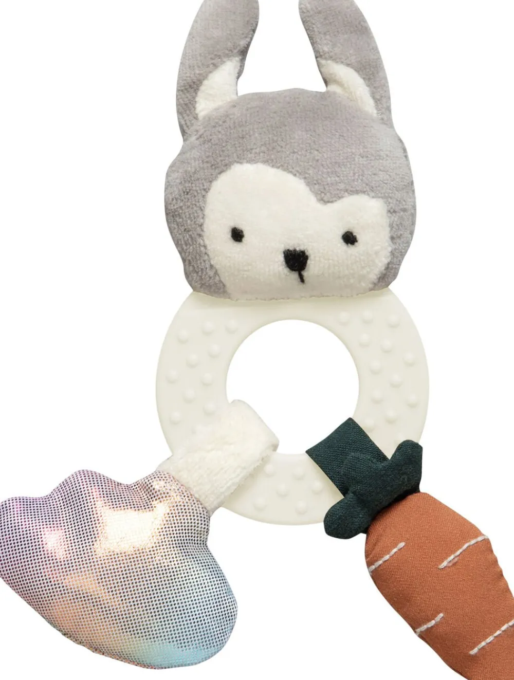 Siggys hoved er lavet af stof og en ring med knopper udgør dens krop. På ringen sidder der to aktivitetselementer – en gulerod og en skinnende sky.