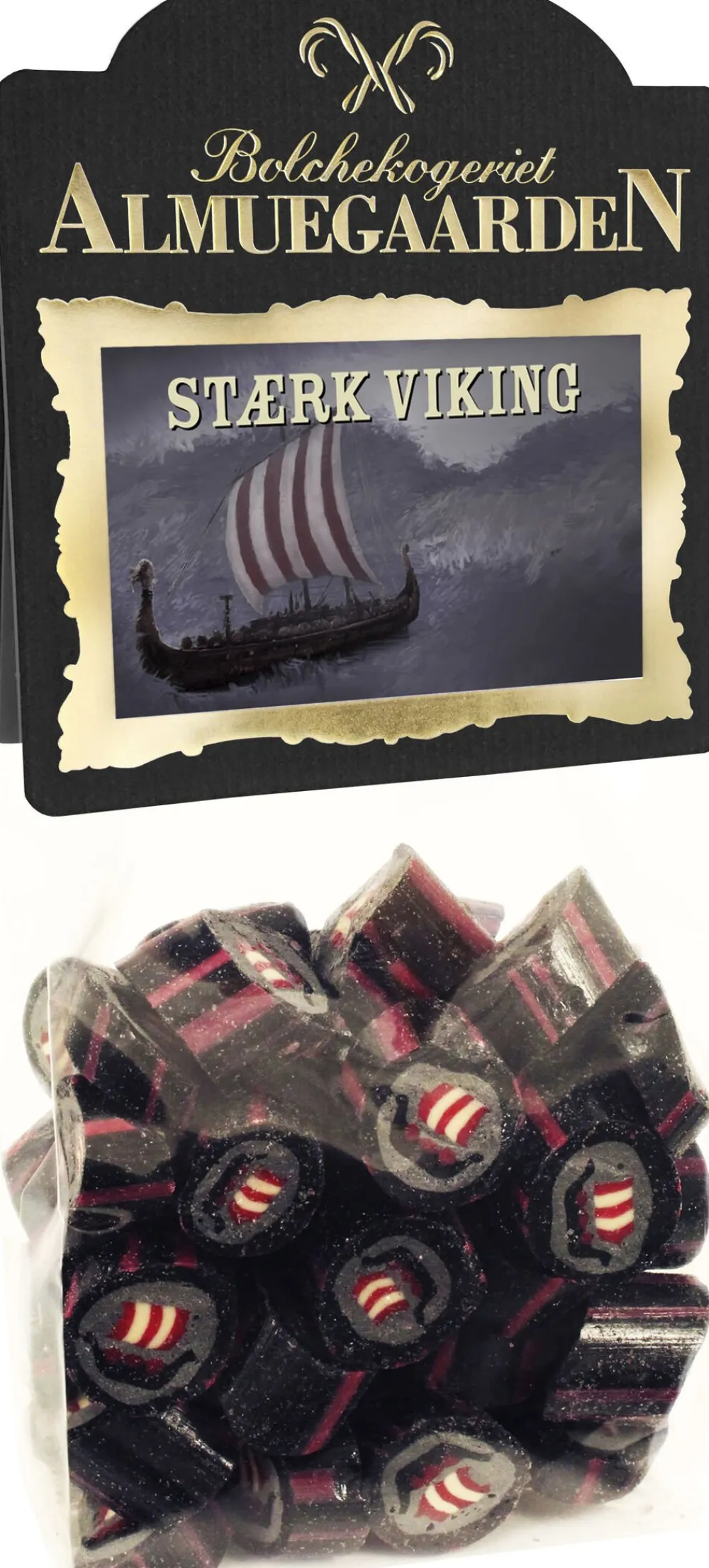 Almuegaarden Stærke Vikinge bolcher med smag af pebret salmiak-lakrids