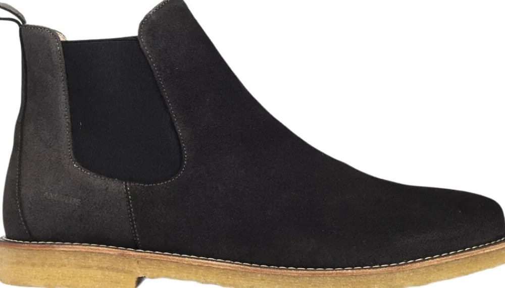 Støvlen har en mandelformet snude, funktionelle elastiksider, der gør støvlen nem at få af og på, hælstrop,
