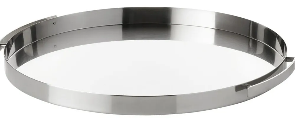 Arne Jacobsens serveringsbakke i rustfrit stål har et funktionelt greb, som følger den cylindriske form, og gør det let at løfte bakken fra bordet. Serveringsbakken står smukt med de resterende dele af Arne Jacobsens barsæt eller kaffekanden og tekanden fra Cylinda-line designfamilien. Bakken er af rustfrit stål og den har en diameter på 33,5 cm.
