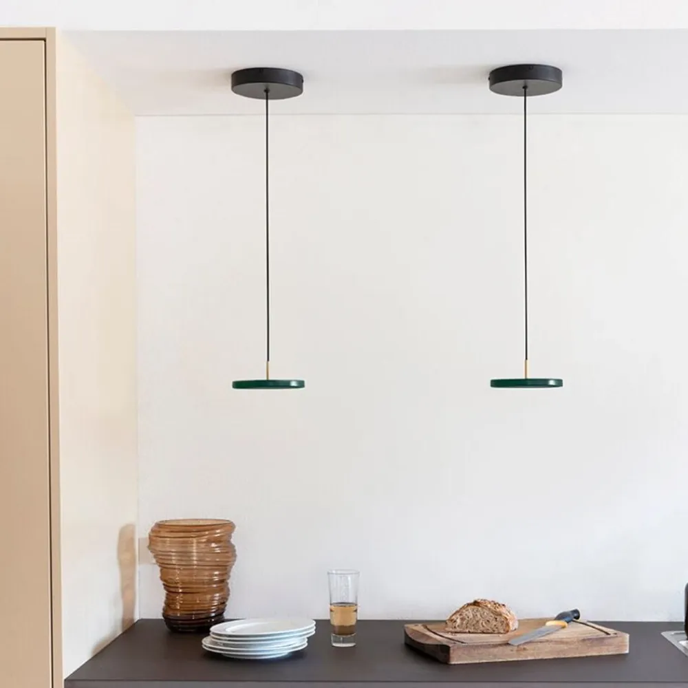 Asteria Micro pendellampen har et stramt og slankt udseende, der er født i krydset mellem Design, teknologi og håndværk. Den har indbygget LED-teknologi med en form, der er så minimal, at den aldrig går af mode. LED panelet har en hvid diffuser, der vil sikre en blød belysning i det omgivende rum og den tynde ledning understrege den dæmpede minimalisme i Design. Dens udtryksmåde er enkel, minimal og klassisk, hvilket gør den perfekt til alle indstillinger. Hæng Asteria micro i sig selv eller ved siden af hinanden over køkkenbordet, så der er praktisk og korrekt lys, når du laver mad til din familie og venner. Til de mindre hjørner af hjemmet, der har brug for lidt ekstra belysning, kan du hænge det i en klynge af tre ved hjælp af Asteria Micro Cluster 3 baldakinen. Hvis du vil have et klyngelook, skal du blot udskifte de medfølgende baldakiner med det nye Asteria Micro Cluster 3-baldakin. Uanset hvad det er, vil det lyse op i dit hjem på den mest elegante måde. Asteria Micro fås i en række forskellige farver og har en top i messing, stål og sort, hvilket giver uendelige Designmuligheder, der passer til din personlige stil.
