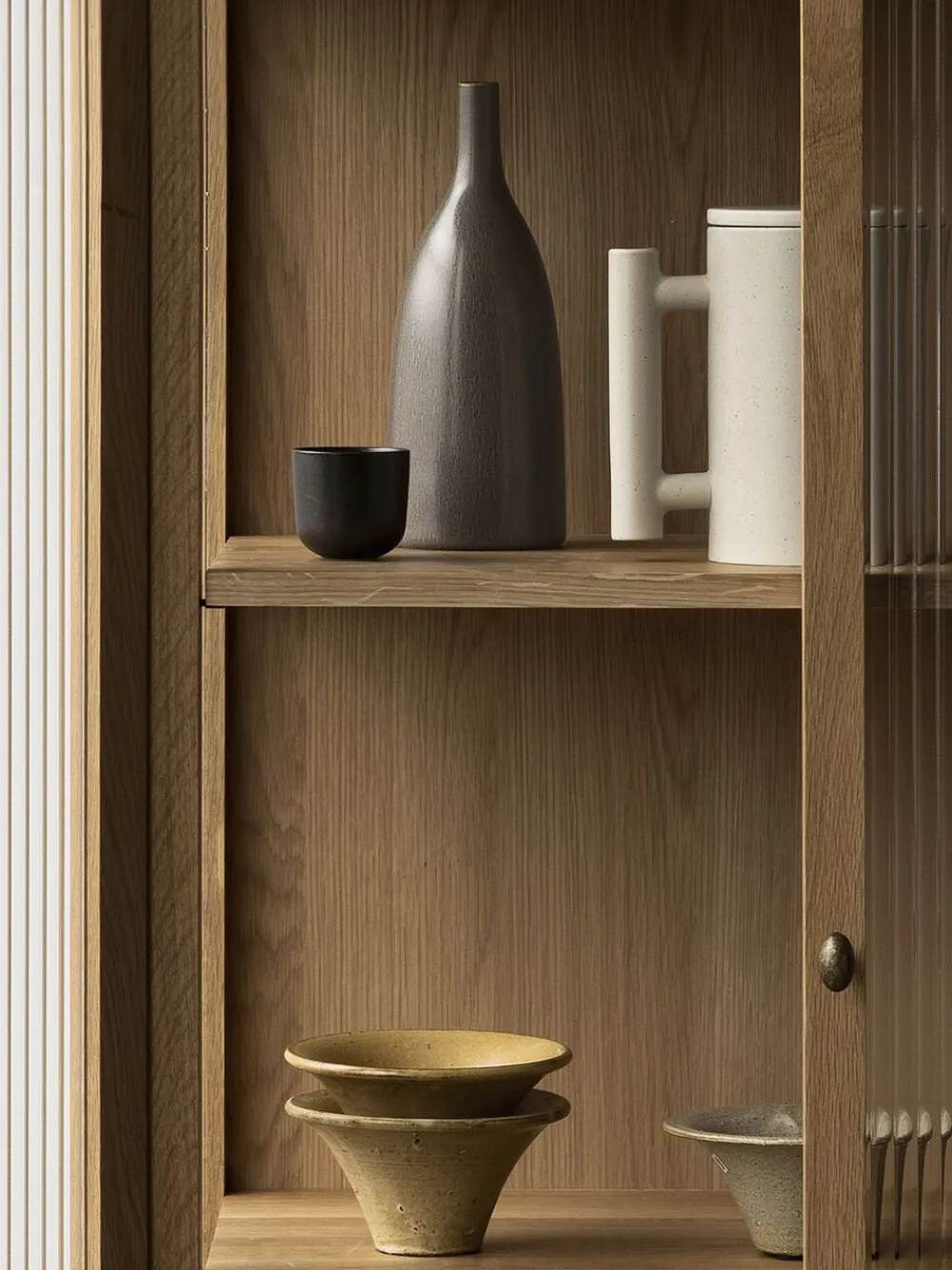 Crafted with a reactive glaze that gives each piece a unique expression according to where in the kiln it is placed when fired, the stoneware Tryptych Bowl is perfectly sized to hold all manner of objects. It also makes a beautiful addition to spaces as a decorative object in its own right. Tapering to a narrow base, the wide-rimmed design is shaped into three different sizes, each in a different colour. The decorative, speckled surface of the bowl lends a nostalgic feel to an interior, reminiscent of prized find or heirloom object. [dimensions-start] Ø15 Créme – H: 8 cm, Ø: 15 cm Ø22,5 Coral Blue – H: 8 cm, Ø: 22,5 cm Ø30 Mocha – H: 8,5 cm, Ø: 30 cm [dimensions-end] [materials-start] Stoneware, glaze [materials-end] [additional-resources-start] DOWNLOADS PRODUCT FACT SHEET 2D/3D FILES [additional-resources-end]