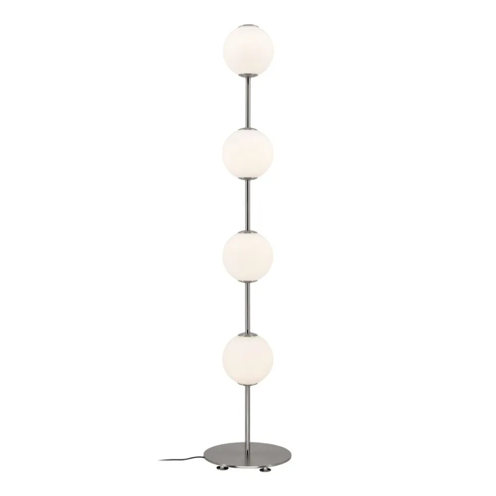 Få en indbydende elegance med Audrey-gulvlampen. Audrey-gulvet er omhyggeligt designet til at bringe et sofistikeret touch til hjemmet og vil løfte dit rum med sine udsøgte detaljer. Med sine metaldetaljer og mundblæste, opale glaskugler udstråler Audrey-gulvet en fængslende varme og elegance, der minder om strålende perler. De fine kugler spreder lyset og skaber en beroligende atmosfære. Audrey-gulvlampen kan dæmpes via en diskret knap på toppen af lampen, så du kan justere lyset for at skabe forskellige stemninger. Med en blød glød vil Audrey-gulvet lyse op i det omkringliggende område og skabe en hyggelig stemning i alt fra din stue til din entré.