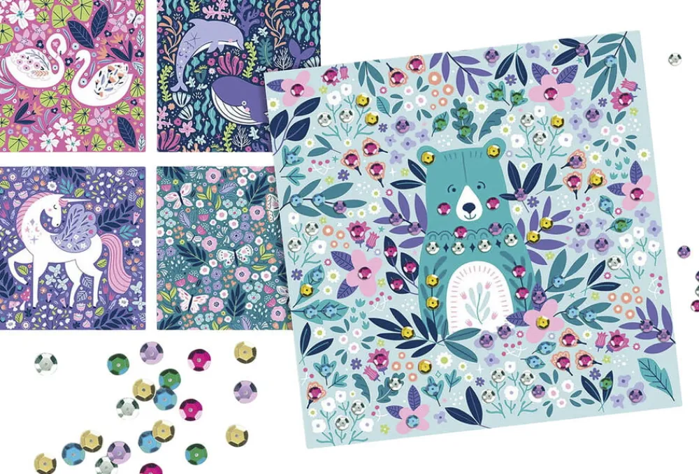 Indhold: 5 x billeder, 600 x pailletter i 6 forskellige farver.