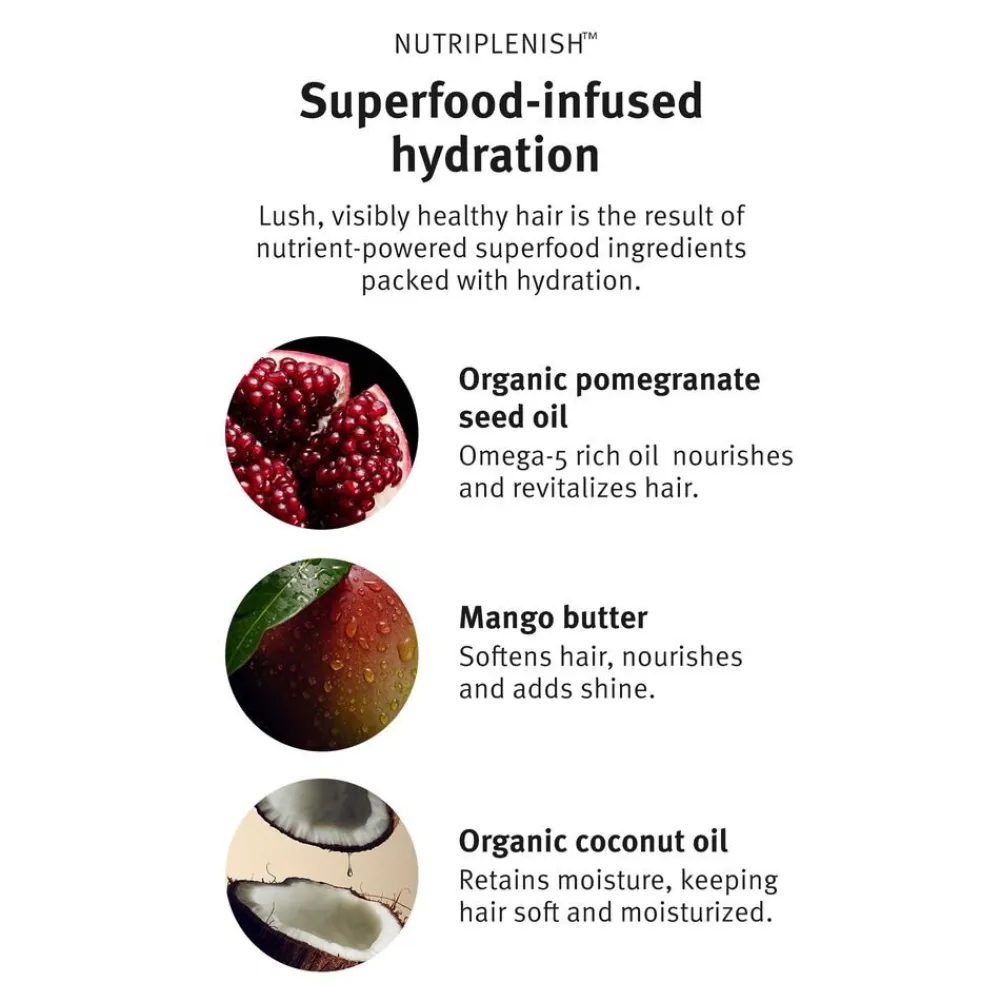 En rig og nærende conditioner. Avedas Nutriplenish Deep Moisture Conditioner er en genoprettende tilføjelse til enhver hårrutine. Conditioneren er ideelt til hår, der lider af tørhed. Med en blanding af olier og plantesmør vil Avedas conditioner tilføre fugt til håret. Den er fyldt med essentielle næringsstoffer, inklusiv granatæbleolie. Den giver et sundere udseende med ekstra glans og glatthed. Produktet er tilføjet kokosolie, som synker ned i håret for at blødgøre håret indefra, mens Mango Butter’s fedtsyrer giver dig den misundelsesværdige silkeagtige finish. Den indeholder 96% naturlige ingredienser og er fri for siliconer og parabener.