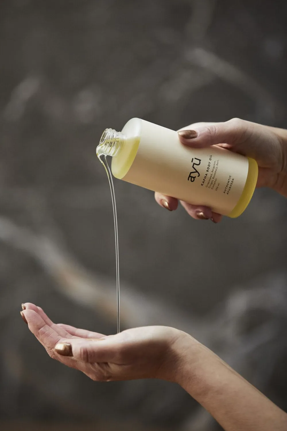 Løft din daglige velvære med Kapha kropsolie en sanselig oplevelse, der bringer energi, balance og skønhed til din hud.