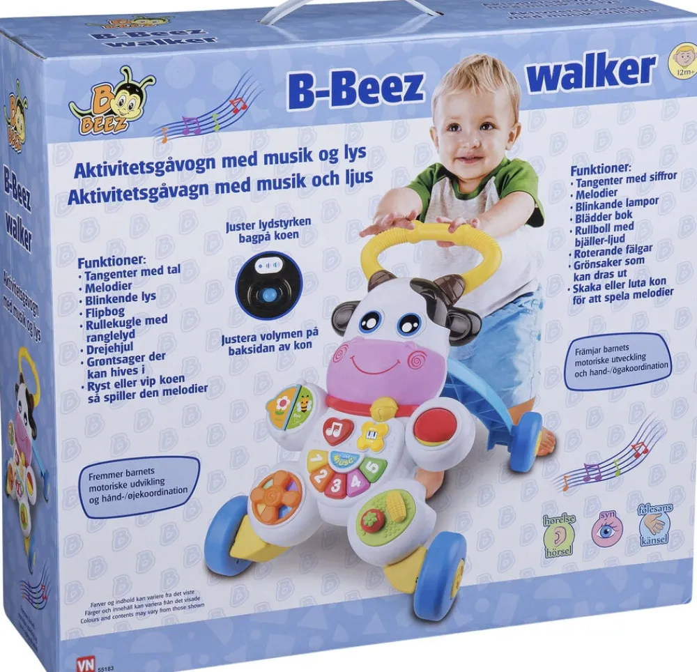 Aktivitetsgåvogn med musik og lys Med musik. lys/lyd og mange forskellige aktiviteter Bruger 3 stk AA-batterier