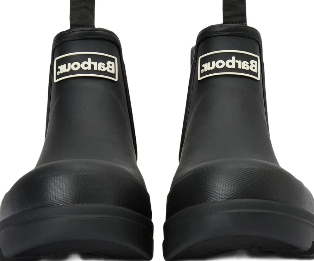 Gummistøvle fra Barbour i en lækker kvalitet. Gummistøvlen er kort i modellen med en let afrundet snude, logodetalje, elastik i siderne samt en grov, præget sål. En lækker gummistøvle af den bedste kvalitet.