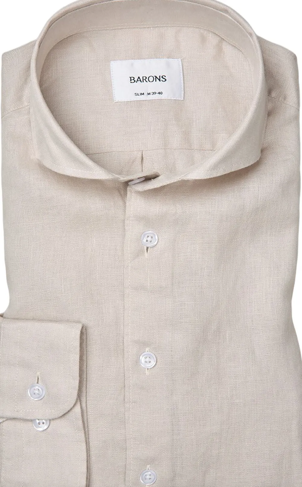 Designet er baseret på vores klassiske silhuetter, men med ekstra bevægelighed i ryggen, takket være en diskret box pleat. Skjorten er skåret med en extreme cutaway-krave, som giver et mere afslappet udtryk uden at det går ud over det skarpe look, der kendetegner skjorter fra BARONS.