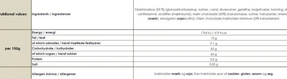 uftige skumfiduser med naturlig vanilje dyppet i kraftig mørk chokolade, der pakker den bløde marshmallow kærligt ind. Enkeltindpakkede. 4 stk. i æsken