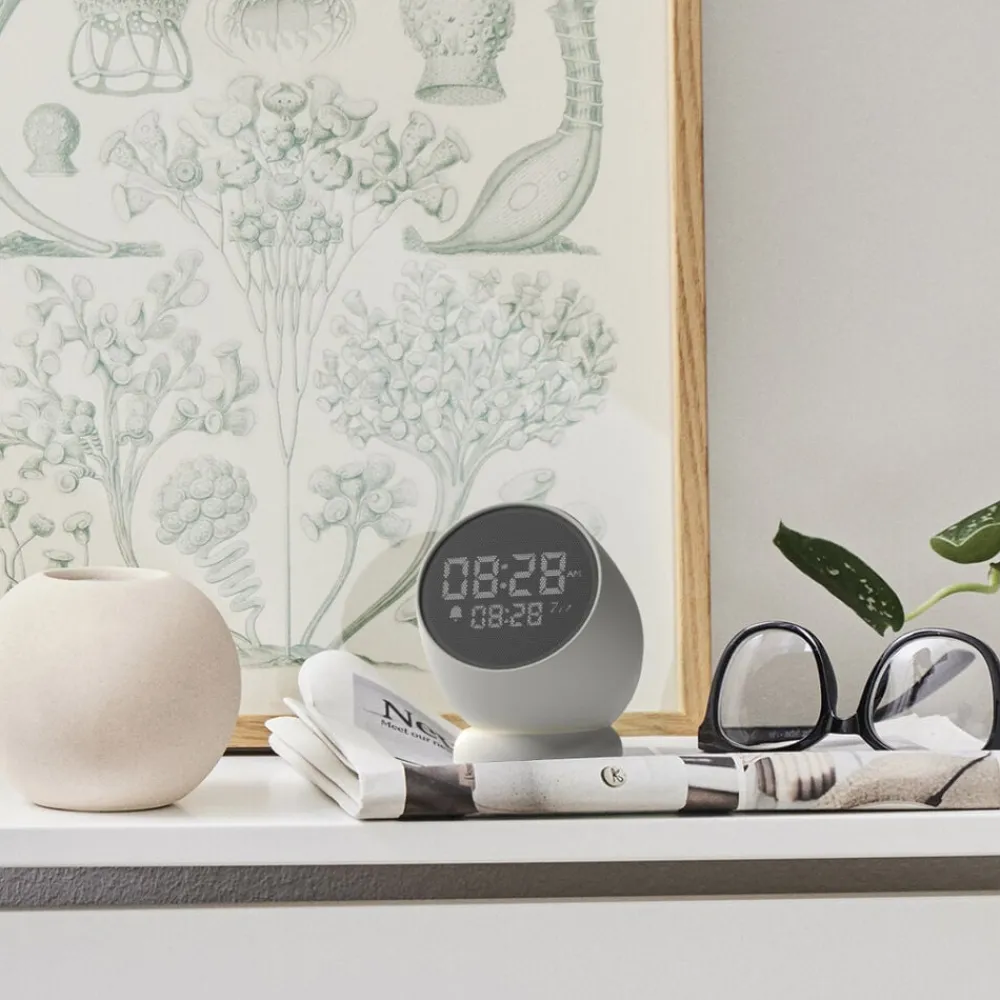 Bell er en alarmklokke, der er designet til at gøre dine morgener lysere og mere energiske. Med sit stilfulde og intuitive design har det aldrig været mere afslappende at vågne op.Bell har desuden et trådløst design for ekstra bekvemmelighed. Sig farvel til sammenfiltrede ledninger og begrænset mobilitet og placér den, hvor det passer dig bedst.