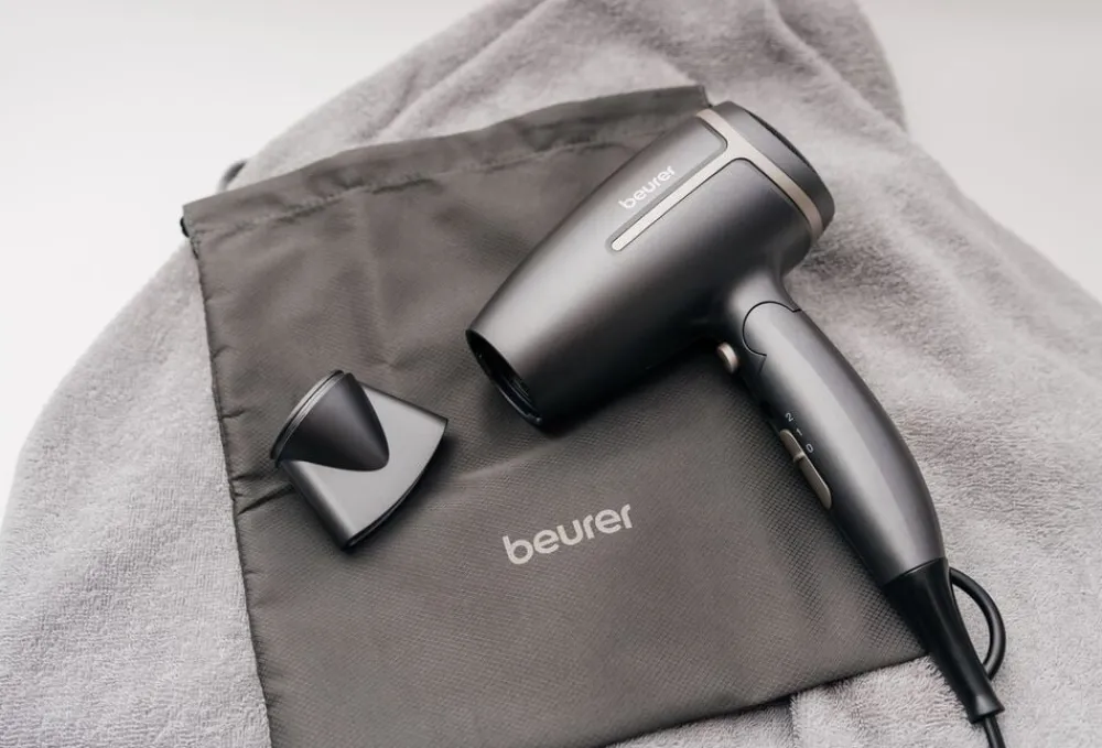 Du får en kraftfuld og kompakt rejsehårtørrer, som kan foldes sammen