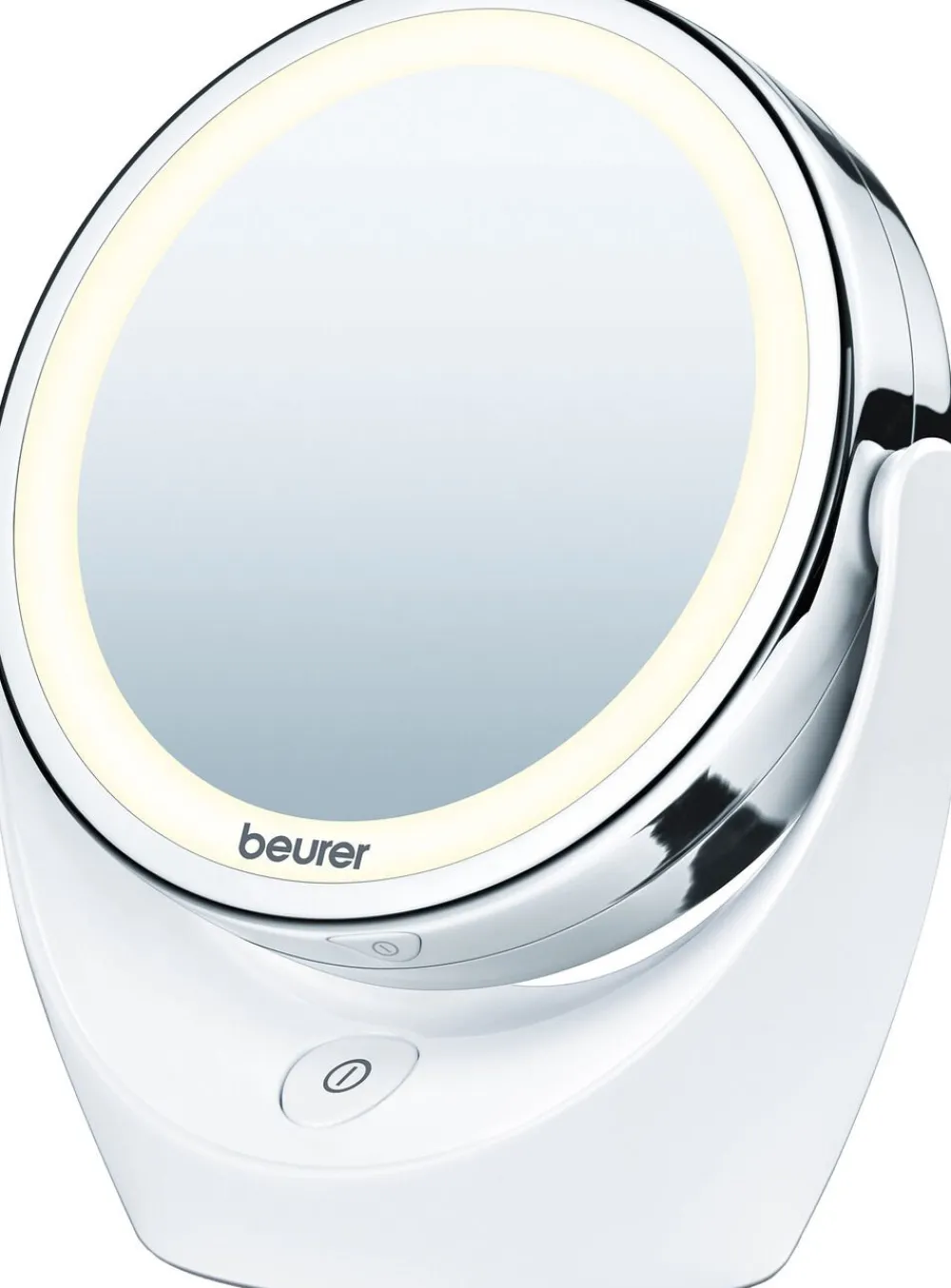 Et optimalt makeupspejl til dig, som vil helt tæt på med 5 x forstørrelse og LED lys, så det bliver endnu lettere at se. Den matte hvide farve og krom finish, der indrammer spejlets 11 cm i diameter, passer perfekt på et badeværelse. Spejlet kan vippes, hvor der på den ene side er et normalt spejl og på den anden et spejl med 5 x forstørrelse. Der er desuden lys i begge spejle. Makeupspejlet er batteridrevet og der medfølger 3 stk. AAA batterier.