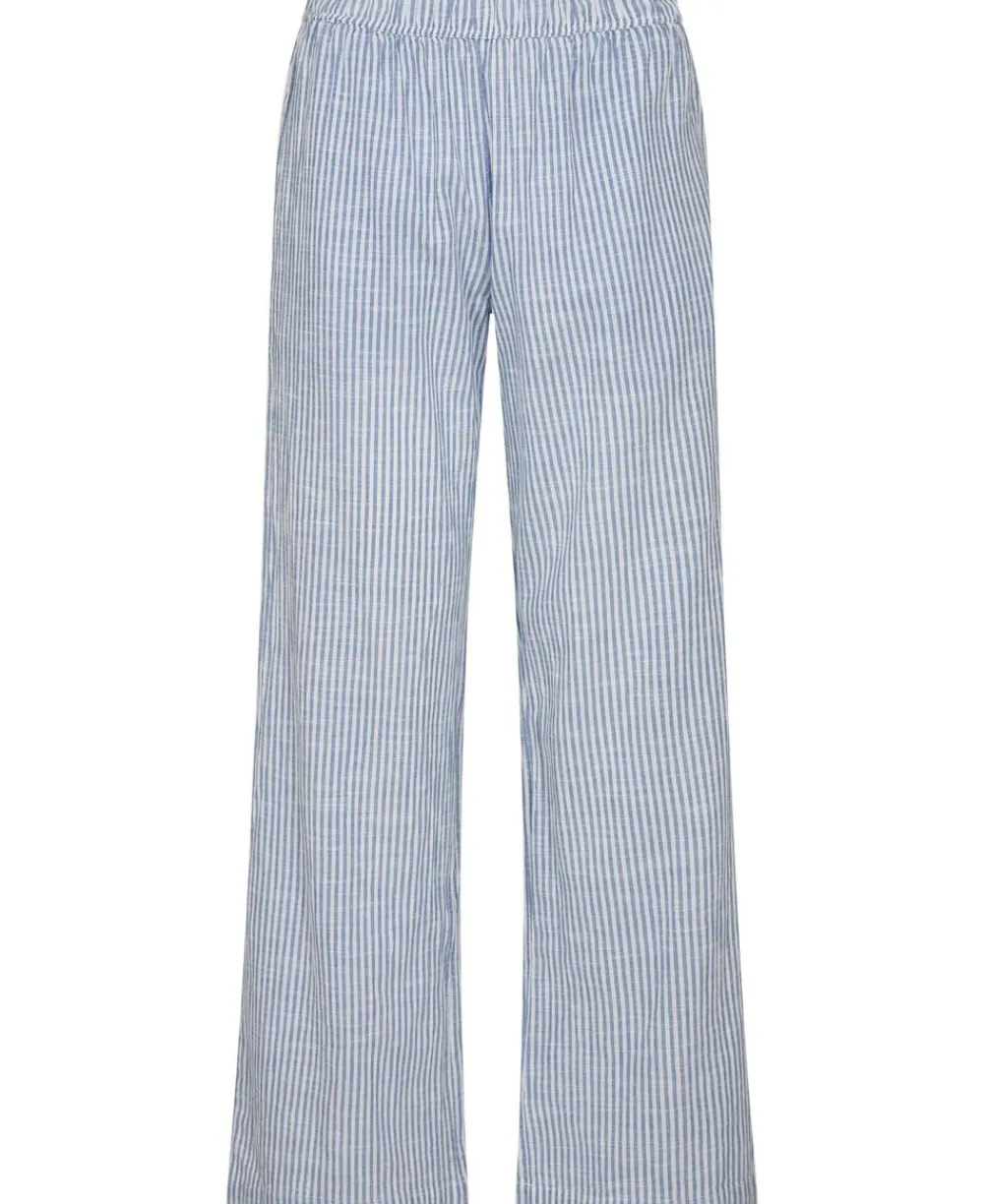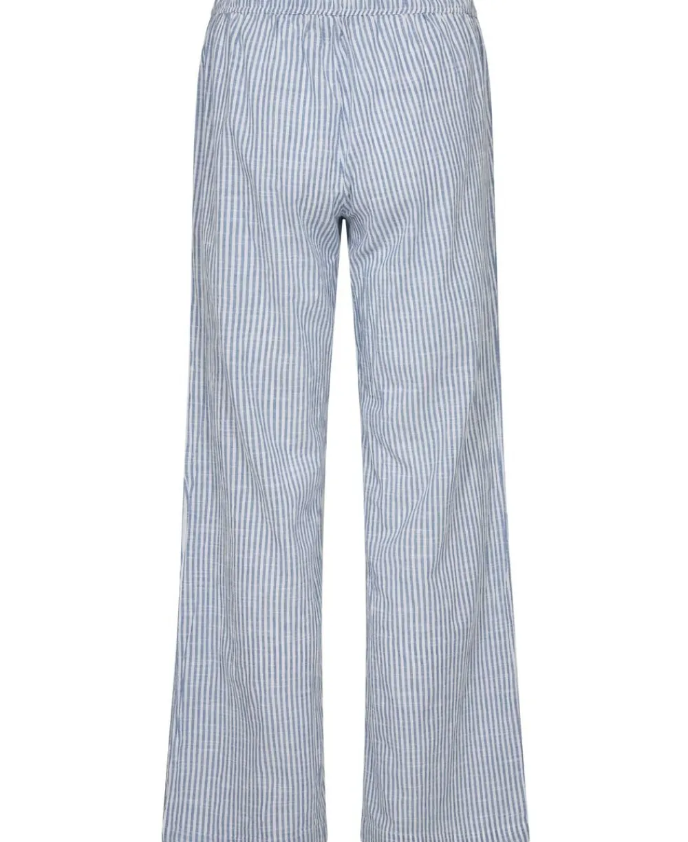 Pyjamasbukser fra Magasin du Nord Collection i den blødeste kvalitet af 100% økologisk bomuld med GOTS-certificering. Bukserne er enkle i modellen med fine striber, en bred elastik i taljen, sidelommer samt en løs, lige pasform. Et par skønne pyjamasbukser i den absolut lækreste kvalitet.