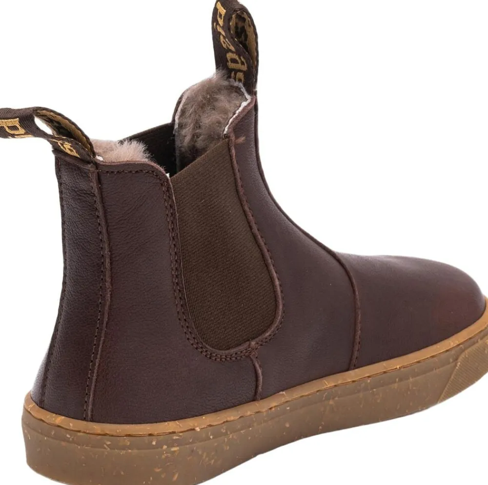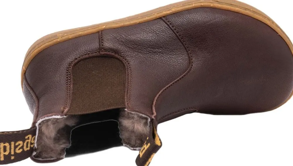 Barefoot chelsea-støvle, der forener klassisk elegance med moderne komfort. ‘ene lamb’ er fremstillet i eksklusivt kvalitetslæder og har en stilfuld silhuet. Den er varm, let og fleksibel – ideel til børn, der ønsker et stilrent look uden at gå på kompromis med komforten.___ – Fremstillet af 100% LWG-certificeret læder, støtter disse sko ansvarlig læderproduktion og miljøvenlige garverier – Ydermaterialet i blødt og åndbart læder er et naturligt valg, der sikrer både høj kvalitet og slidstyrke – Foring i 100% lammeskind, der sikrer blød komfort og naturlig åndbarhed, så fødderne holdes varme og behagelige hele dagen – Udtagelig tekstilsål med støtte, der giver en blød og åndbar base for fødderne og kan let fjernes for rengøring, separat tørring eller justering af støtte – Flad sål uden hældrop fremmer en naturlig gang og forbedrer ankelstabilitet samt balance – Skoen har en bred tåboks, der frigiver plads til tæerne og fremmer en sund fodstilling – Den fleksible gummisål er let og skridsikker, med genanvendte nister, der giver et unikt udtryk. Materialerne følger fodens naturlige bevægelser og sikrer maksimal frihed, komfort og et sikkert fodfæste hele dagen – Elastikken i siderne og de lange dekorative stropper gør det let for små fødder at komme i og op af skoen