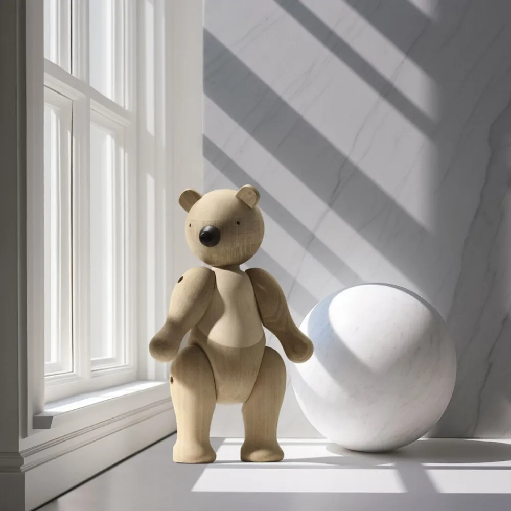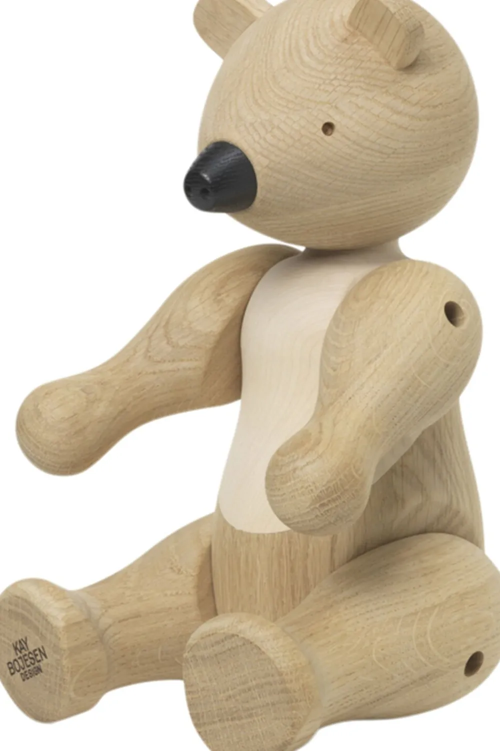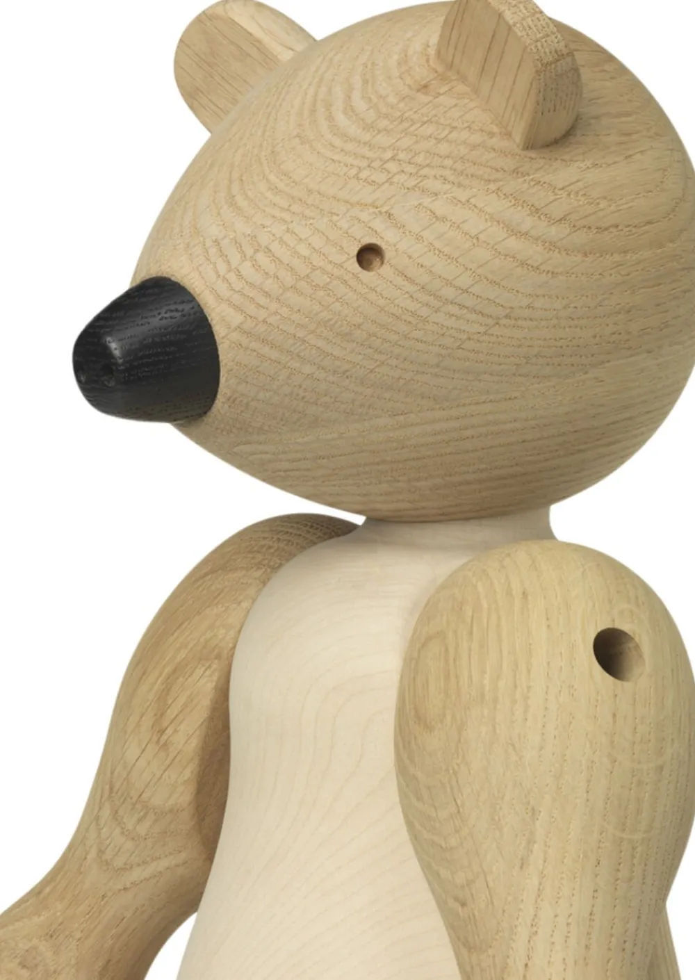 Et stort og stærkt ikon i en endnu større udgave. Kay Bojesens berømte Bjørn i den store variant måler hele 40 cm i højden en størrelse der virkelig giver designet opmærksomhed og lader de venlige, bløde og smilende linjer, som Kay Bojesen er kendt for, komme til sin ret. I denne størrelse står Bjørnen helt klart og enkelt i sit ikoniske udtryk og unikke formsprog. Den store Bjørn er skabt i hånden med kærlighed og omhyggelighed på præcis samme måde som siden begyndelsen af 50erne, hvor Bjørnen kom til verden med sine karakteristiske åbne arme. Bjørnen er skabt i egetræ og ahorn. Træet står ubehandlet og dets iboende liv, åretegninger og karakteristika kommer smukt til sin ret i den store version af Bjørnen, hvor alt er skaleret op. Den store Bjørn er en oplagt gaveidé til alle, der sætter pris på klassisk dansk design uanset om det er til det store jubilæum eller den runde fødselsdag. Bjørnen repræsenterer styrke, mod og tætte familiebånd og minder os om at være tro mod os selv og møde verden med venlighed og et åbent hjerte.