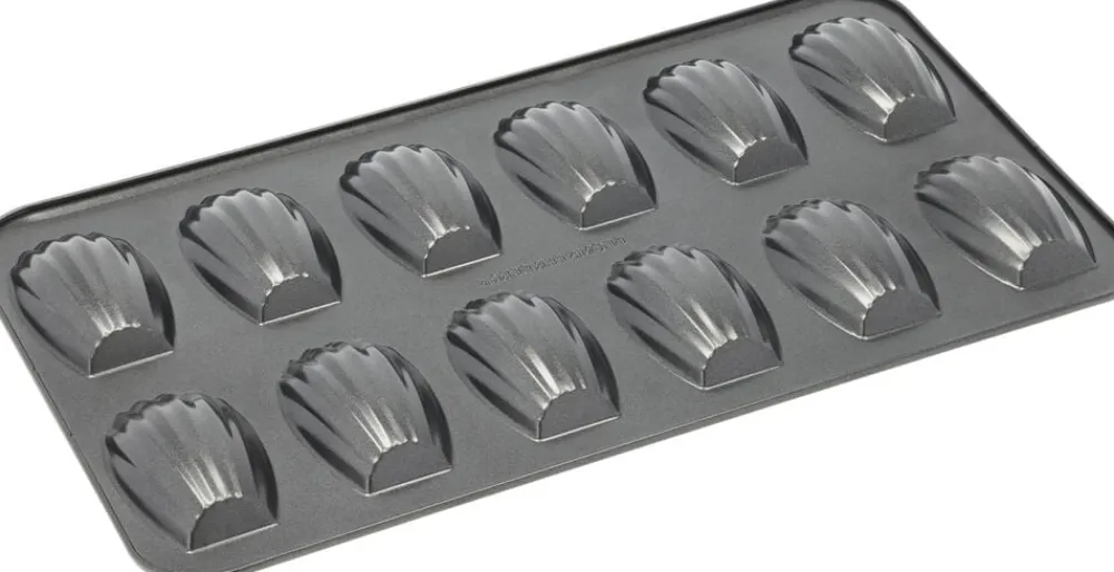 Madeleineform til 12 stk. Formen er fremstillet i stål og designet til at lave små madeleines, som er lette og luftige kager opkaldt efter den franske konditor Madeleine Paulmier. Formen ligner en lille muslingeskal med sine små fordybninger, og det giver de færdige kager deres karakteristiske udseende. Tåler temperaturer op til 230° C. Tåler ikke mikroovn og fryser. Velegnet til opvaskemaskine. Brug ikke skarpe genstande som kan beskadige overfladen.
