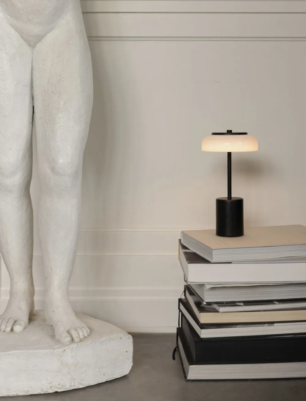 Blossi Table Mini er en bærbar bordlampe sat på en gylden metalfod og med en gennemsigtig skærm i plast. Blossi Table Mini lampen skaber uendelige muligheder for at oplyse dine indendørs- og udendørsområder. Lampen er genopladelig med USB-C kabel, og har en batteridriftstid på op til 10 timer.
