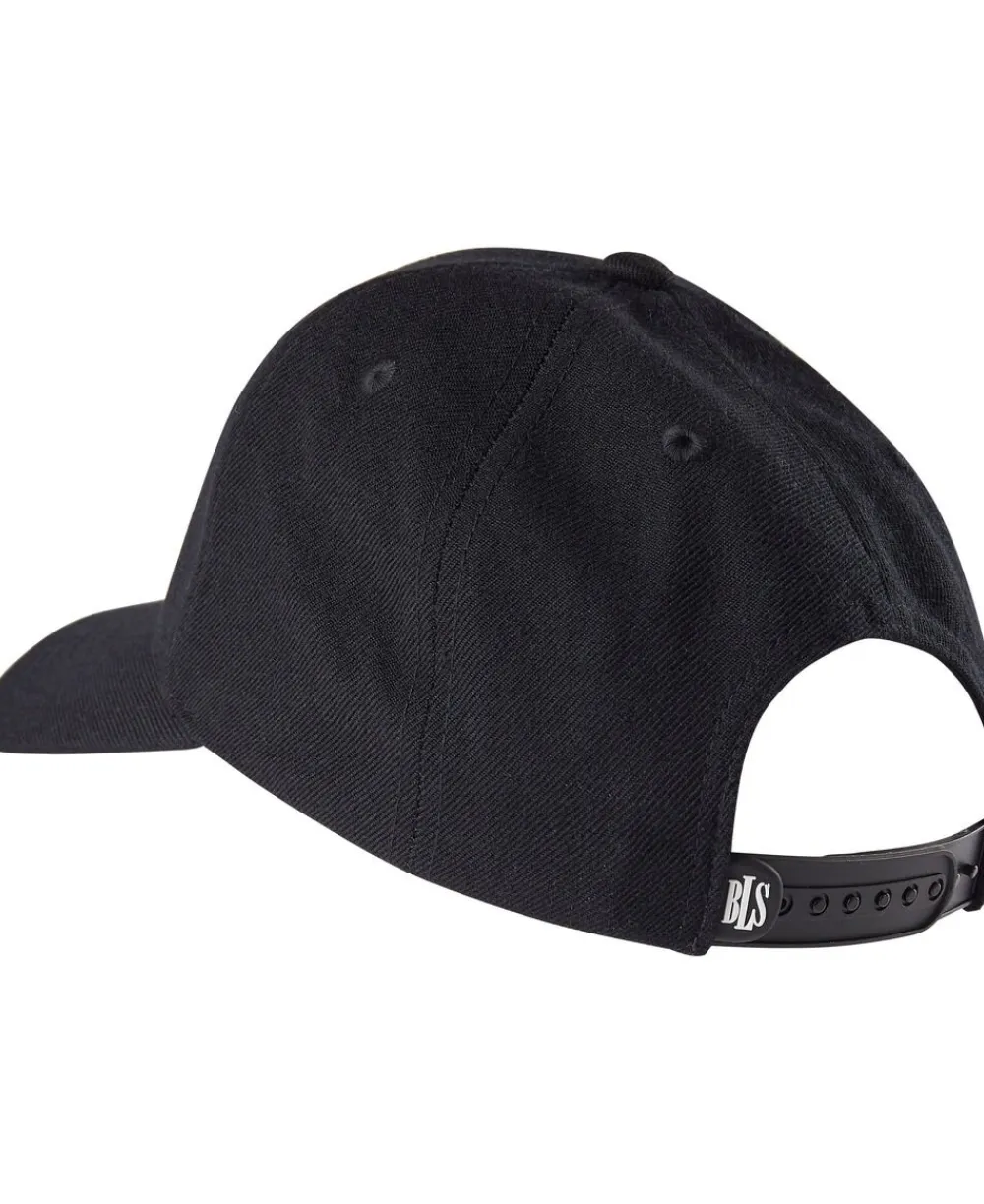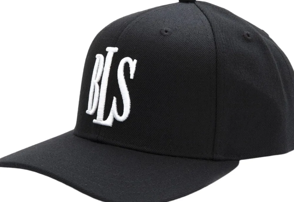 Black Classic high profile baseball cap with white bls embroidery on front and snapback closure.