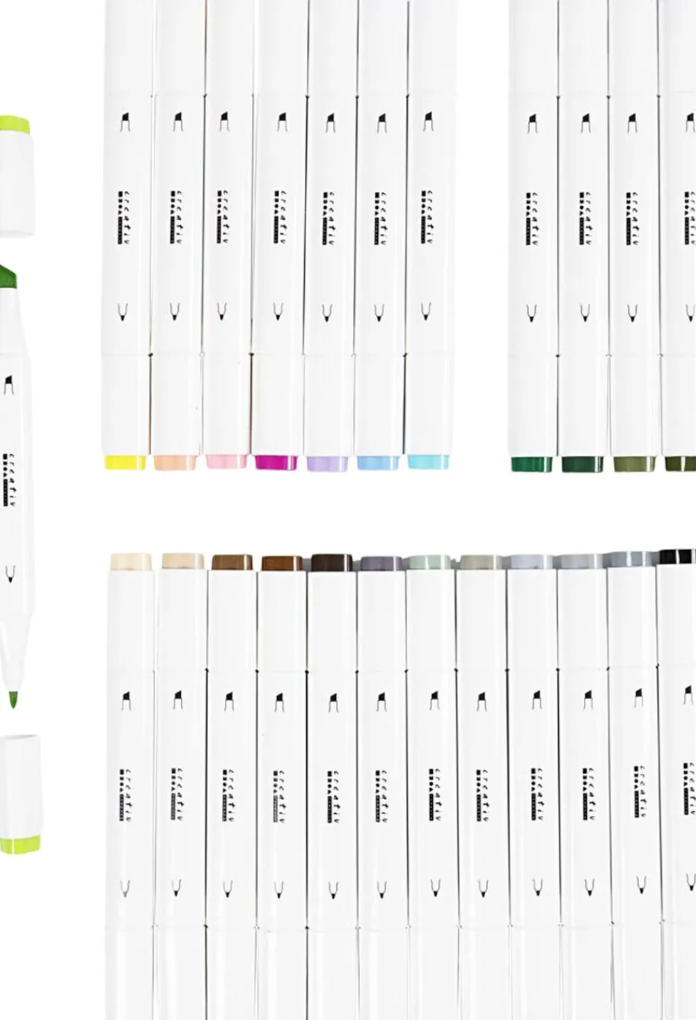 Alkoholbaseret 2-i-1 tusch i høj kvalitet, som tørrer permanent og semi-transparent op. Tuschen er din perfekte tegnemakker også hvis du arbejder seriøst med illustration eller blot ønsker at dine tegninger og farvelægning på hvidt papir står knivskarpt. Er du glad for at tegne, bliver du vild med vores hurtigtørrende tegnetusch. De flotte, levende farver dækker uden at lave striber på hvidt papir. Tuschen har dobbeltspids en firkantet bred spids til farvelægning af større områder og en tynd spids til mindre detaljer og streger/skrift. Tuschens farver er semi-transparente så hvis du vil, kan du lave fine, lette farveovergange mellem flere farver ( også kaldet at blende ). Er du vild med skriveteknikken kalligrafi, er tuschen også egnet til det. Tip: Tegn på vores gode tuschpapir det er netop udviklet til alkoholbaserede tusser.