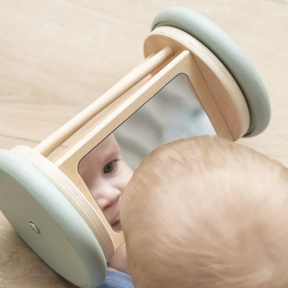 Et stort spejl, der forbliver på plads, så dit barn kan se sig selv lege