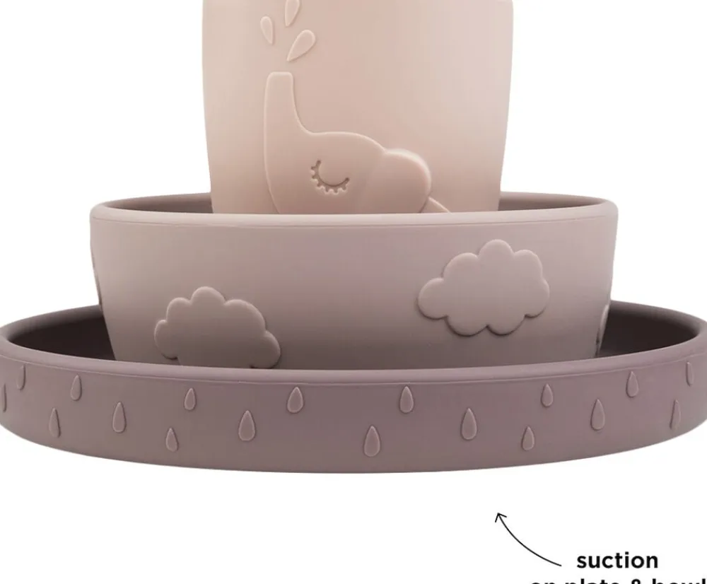 Sugekoppen under tallerkenen og skålen holder servicet på plads under måltidet