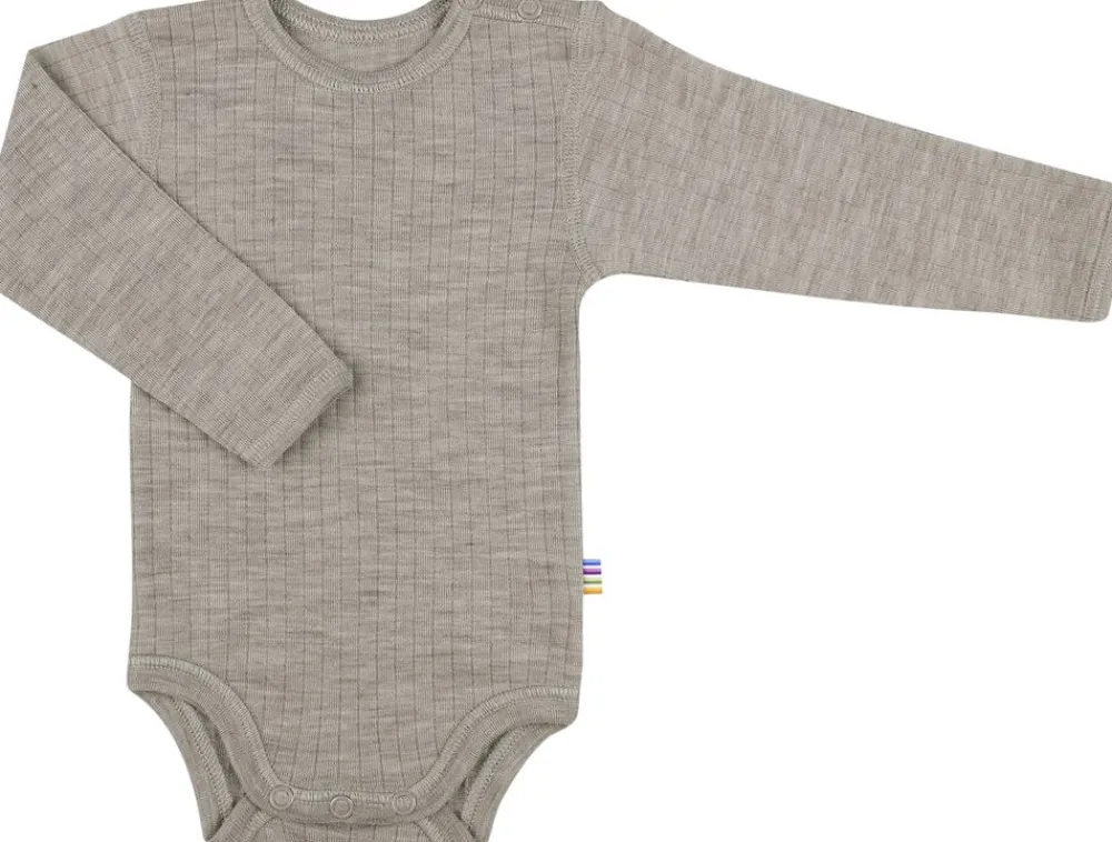 Body med lange ærmer. Trykknapper på den ene skulder og mellem benene. Virkelig en blød, elastisk let uldkvalitet med lodret rille mønster. Kvalitetens strækevne gør at den er behagelig at bruge inderst. Ensfarvet. Pure merino wool og Nordic Ecolabel mærk