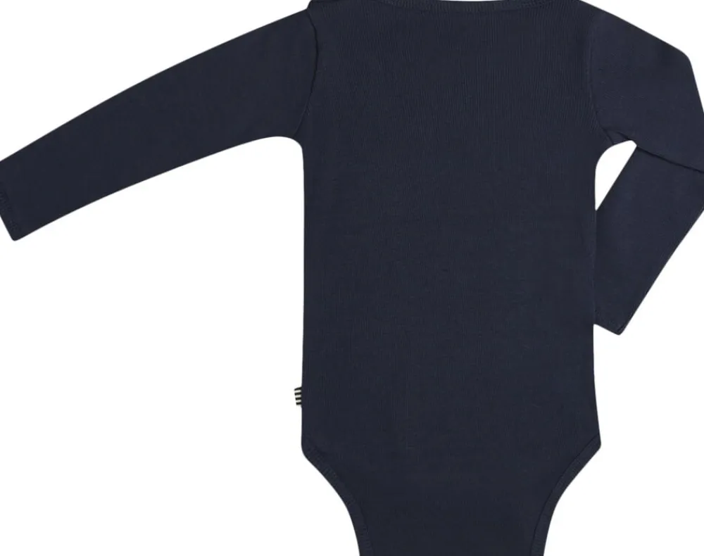 Body fra Mads Nørgaard-Copenhagen. Den har lange ærmer og trykknapper i kilen. En god basis body i 100% økologisk bomuld. Ribbet kvalitet.
