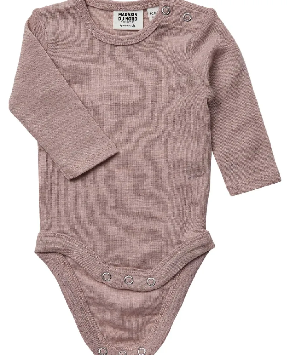 Body fra Magasin du Nord Collection i den blødeste kvalitet af 100% merinould med RWS- og OEKO-TEX® STANDARD 100-certificering. Bodyen er enkel i modellen med lange ærmer, en rund halsudskæring, ribkanter, trykknapper i bunden og ved den ene skulder samt en tætsiddende pasform. En skøn body i den lækreste kvalitet. En certificering med Responsible Wool Standarden (RWS) betyder høje standarder for dyrevelfærd og at der arbejdes med respekt for naturen og mennesker i landbruget. OEKO-TEX® STANDARD 100 er en international standard, der sikrer, at alle dele af produktet overholder strenge miljø- og kemikrav. Når du vælger et OEKO-TEX® STANDARD 100-certificeret produkt, har du en garanti for at produktet er kontrolleret for indhold af sundhedsskadelige stoffer.