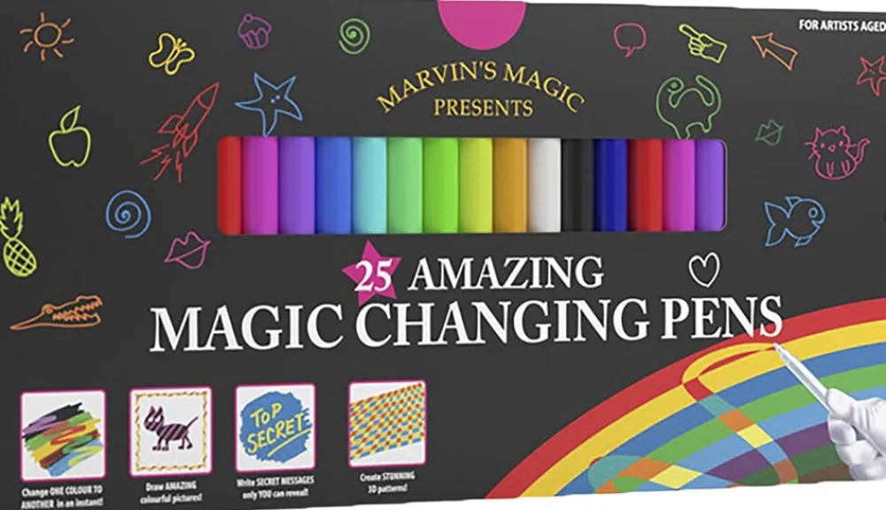 Indeholder farveændringspenne, usynlige penne og meget mere for at skabe magiske teknikker, mønstre og billeder.