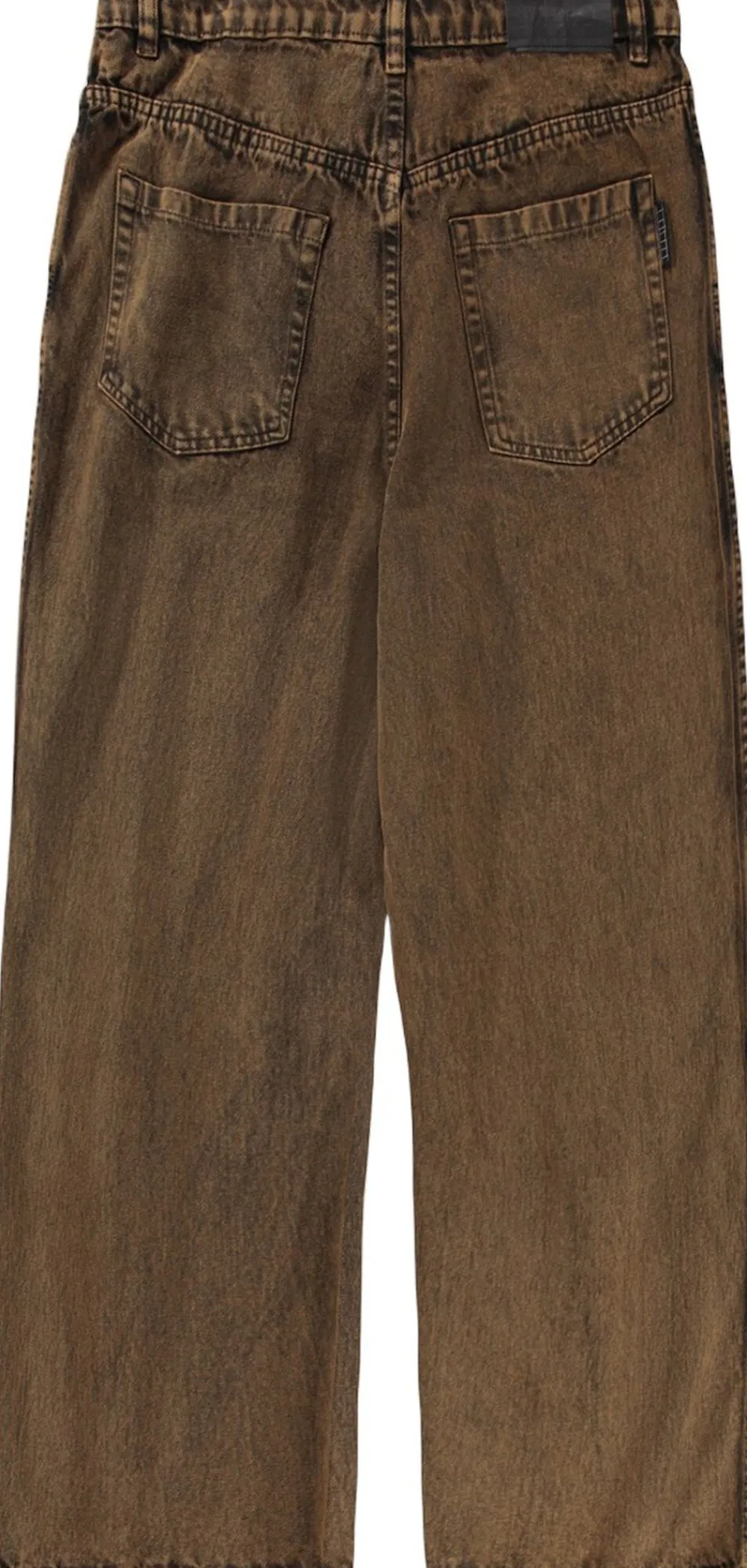 Disse denimjeans fra Molo er lavet i økologisk bomuld med en sort og rød vask. Bukserne har 5 lommer og en bred pasform, inspireret af skatermiljøet. Livvidden kan justeres med en indvendig elastik for optimal pasform til alle børn. Størrelser 92-134 har trykknap, mens størrelser 140-176 har en almindelig jeansknap.