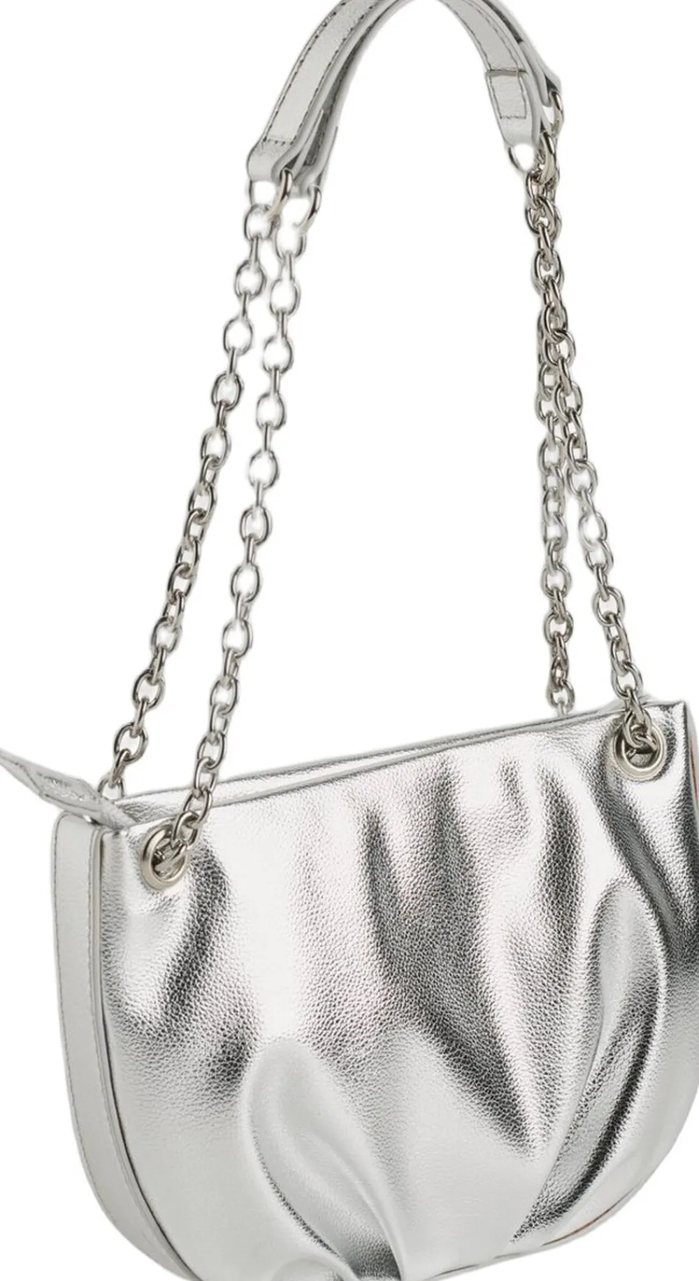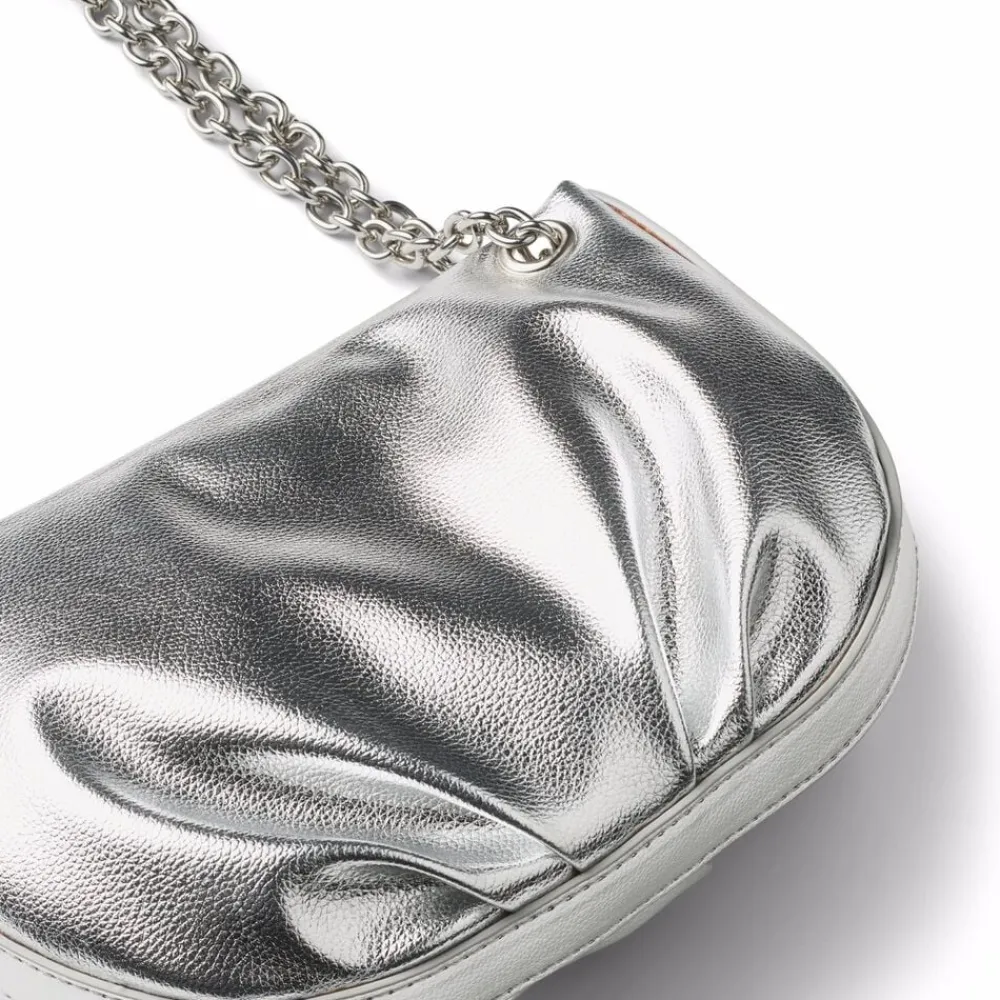 Sølvfarvet skuldertaske med en moderne kædehank og praktisk lynlåslukning, perfekt til børn. Denne taske er ideel til at opbevare småting som legetøj, snacks eller bøger. Den rummelige inderside gør det nemt at organisere, mens den lette konstruktion sikrer komfort hele dagen. En trendy accessory, der tilføjer sjov til ethvert outfit.
