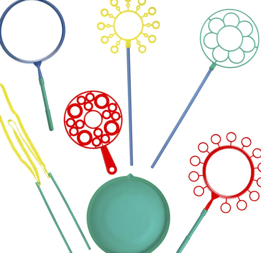 Med dette store sæbeboblesæt er der underholdning til mange timers leg.