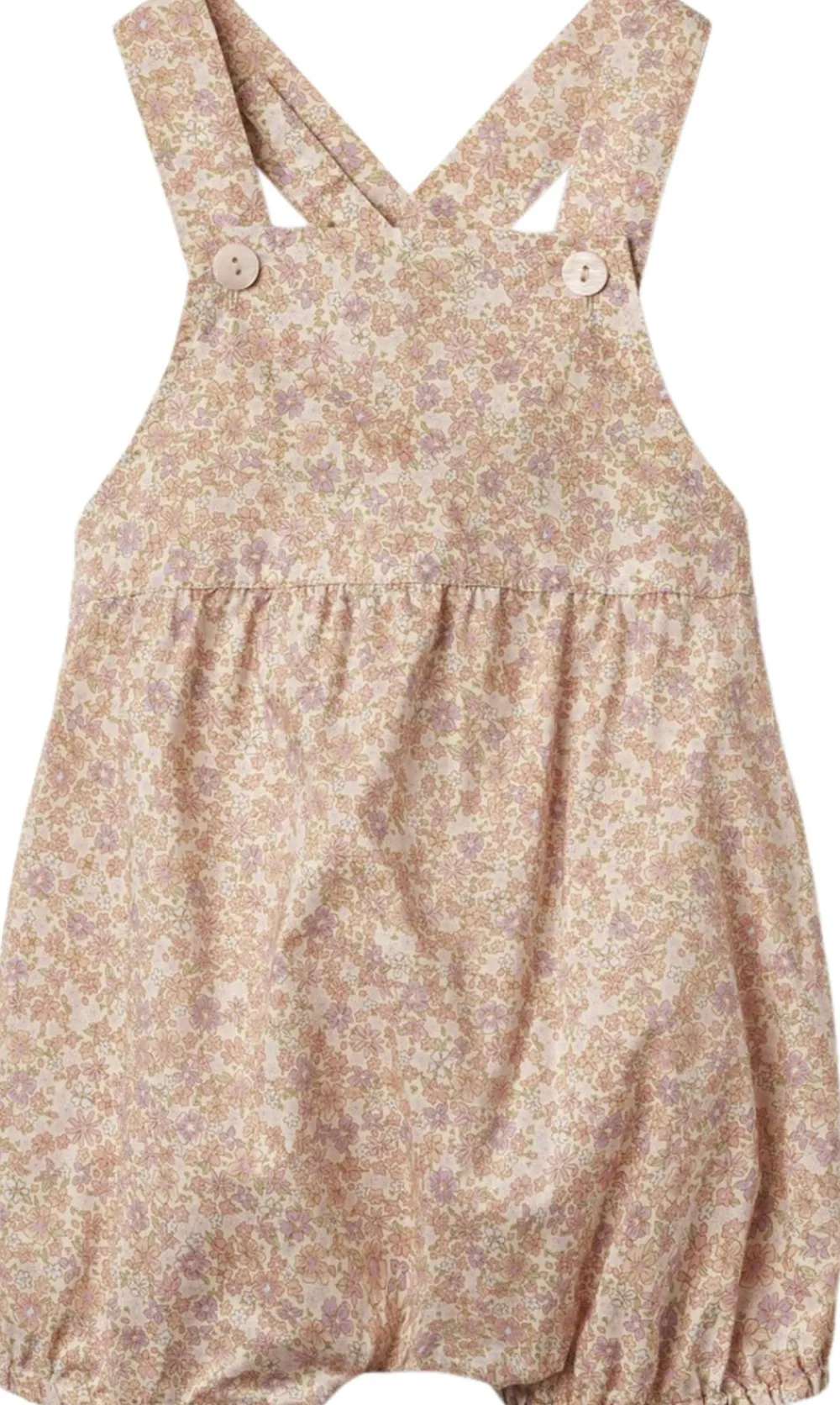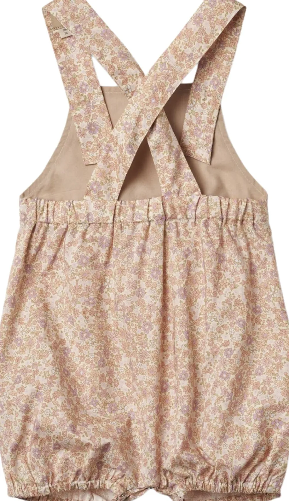 Romper med stropper, der krydser på ryggen i blødt økologisk bomuld til babyer. – Almindelig pasform – Justerbare brede stropper med knapper – Skæring over taljen med rynkninger nedenfor – Elastik i benåbningerne – Trykknaplukning i skridtet – Wheat signaturprint Wheats søde sommerdragter er essentielle til de helt små, når vejret skifter og sommeren atter melder sin ankomst. Denne dragt er perfekt til de mange festlige lejligheder, da den har mange skønne detaljer samt et bærestykke med læg og vidde i underdelen. Denne dragt kan styles med et par strømpebukser under eller blot en tynd kortærmet body på de varme dage. Sæt en cardigan til for at fuldende looket. — – 100% Økologisk bomuld – Produktet er GOTS certificeret