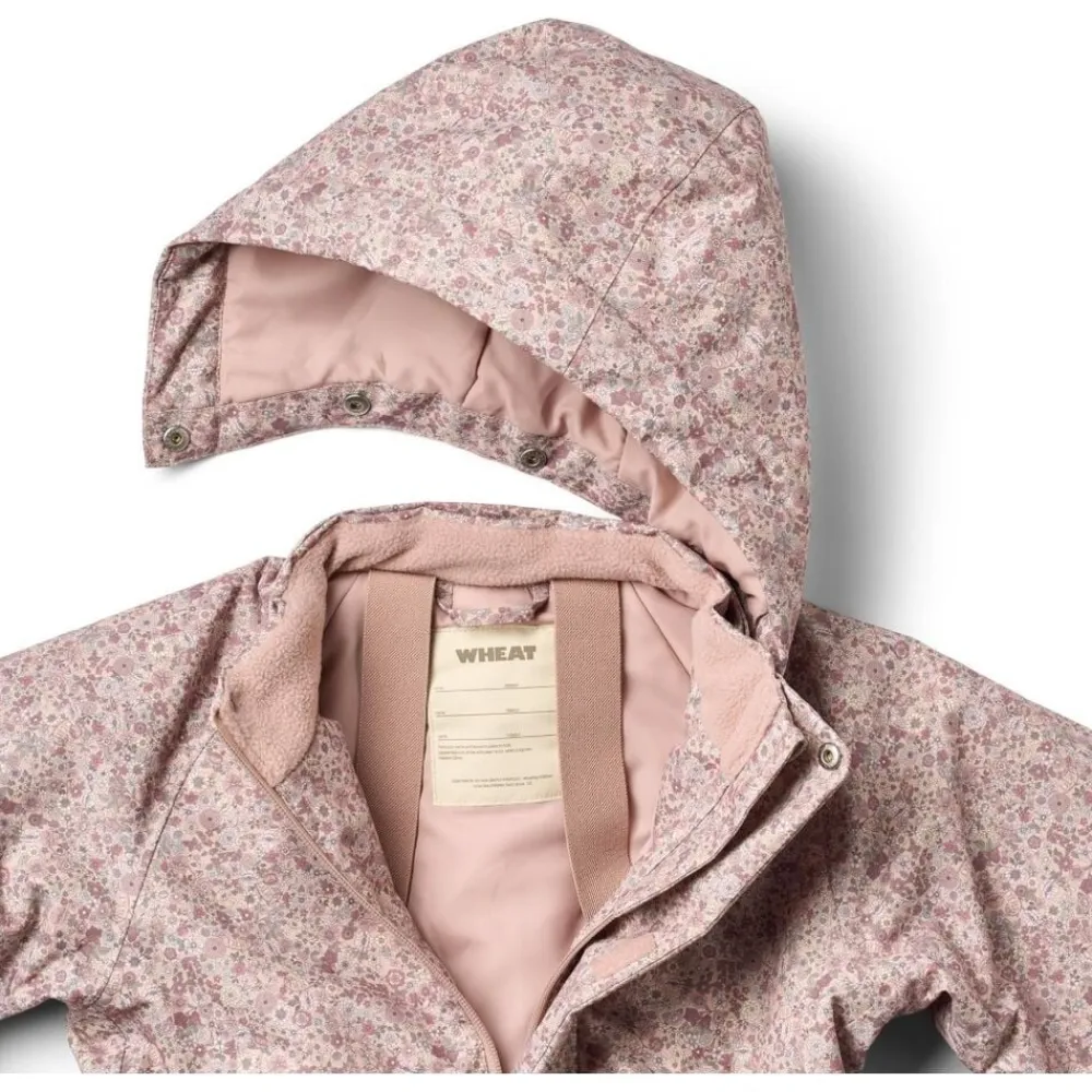 Praktisk flyverdragt med print i åndbart og vandtæt materiale til børn. – Normal pasform – Foret med blød fleece – Aftagelig og justerbar hætte – Elastiske seler – Justerbar snøre i taljen – Lommer med klaplukning – Justerbar elastikrem under fødderne – Stormmanchetter med elastik ved ærmerne – Elastikker ved benkanten – Reflekser – Wheat signaturprint Wheat’s tekniske flyverdragter er åndbare, slidstærke og vind- samt vandtætte for at sikre, at dit barn forbliver varmt og tørt i det kolde efterårs- og vintervejr. Den er desuden smudsafvisende og er derfor nem at rengøre med en klud. Dragten har mange praktiske detaljer såsom aftagelig og justerbar hætte, stormmanchetter og justerbare gummistropper under fødderne. Den har også indsyet elastiske seler, som giver dit barn mulighed for at have dragten halvt af med armene fri, hvis dit barn bliver varm eller er indenfor for en stund. — Tekniske funktioner: Vandtæt: 10. 000 mm Åndbarhed: 8. 000 g/m2/24 timer Slidstyrke: 50. 000 mm Standard 100 by OEKO-TEX® PFC-fri Fluorfri vand- og smudsafvisende finish (BIONIC FINISH ECO) Letvægt teknisk polstring Tapede sømme — Yder materiale: 100% Genanvendt polyester Polstring: 100% Genanvendt polyester Fleecefor: 100% Genanvendt polyester For: 100% Genanvendt polyester