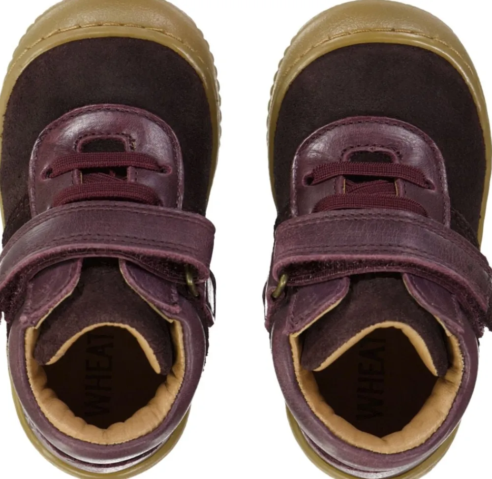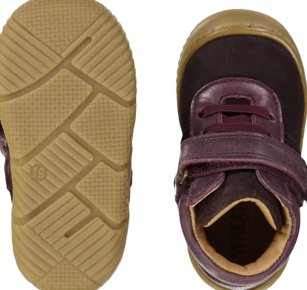 Wheat Fodtøj Behagelige pre-walkers med elastik- og velcrolukning til det mindste barn. – Elastik- og velcrolukning Wheats pre-walkers er lette, fleksible og behagelige for dit barn at bevæge sig rundt i. De er designet til at beskytte de små fødder, der skal bevæge sig ud på eventyr for første gang. Denne sko har elastiksnørebånd samt velcrolukning, hvor begge funktioner gør det nemmere at give barnet skoen på. Pre-walkeren er lavet i krom- og metalfrit garvet læder og ruskind til dit barn. Læder, der er garvet uden krom og metal kan få en skøn patina over tid. Blød latex indlægssål beklædt med krom- og metalfrit garvet læder. Latex er et naturprodukt, der er åndbart og fleksibelt med en trampolineffekt for behagelige skridt. Ydersålen er lavet af TR gummi, som er et meget holdbart og skridsikkert materiale. Skoens sål er designet til at dække tæerne på snuden for at give den mest optimale beskyttelse. De er normale i størrelsen og har et fast greb om dit barns fødder. Anbefalet voksetillæg: 10-15 mm Vejl. indvendige mål: Str. 19 = 12,3 cm Str. 20 = 13,0 cm Str. 21 = 13,7 cm Str. 22 = 14,2 cm Str. 23 = 14,9 cm Str. 24 = 15,8 cm Str. 25 = 16,4 cm Str. 26 = 17,0 cm Sammensætning: Yder materiale: Ruskind og læder Foer: Krom- og metalfrit garvet læder Indlægssål: Blød latex indlægssål belagt med krom- og metalfrit garvet læder Yder sål: Genanvendt TR gummi