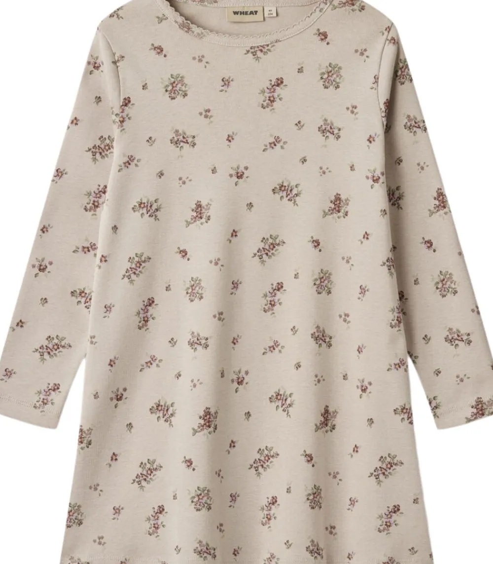Wheat Skøn og blød natkjole i økologisk bomuld til juniorbarnet. – A-formet – Fin blondekant i halsudskæringen – Wheat signaturprint Wheats nattøj er behageligt at have på og er perfekt til de kolde efterårs- og vinternætter. Natkjolen har et smukt signaturprint, der er designet og håndtegnet af Wheats in-house designteam. Sammensætning: – Standard 100 by OEKO-TEX® – 100% Økologisk bomuld