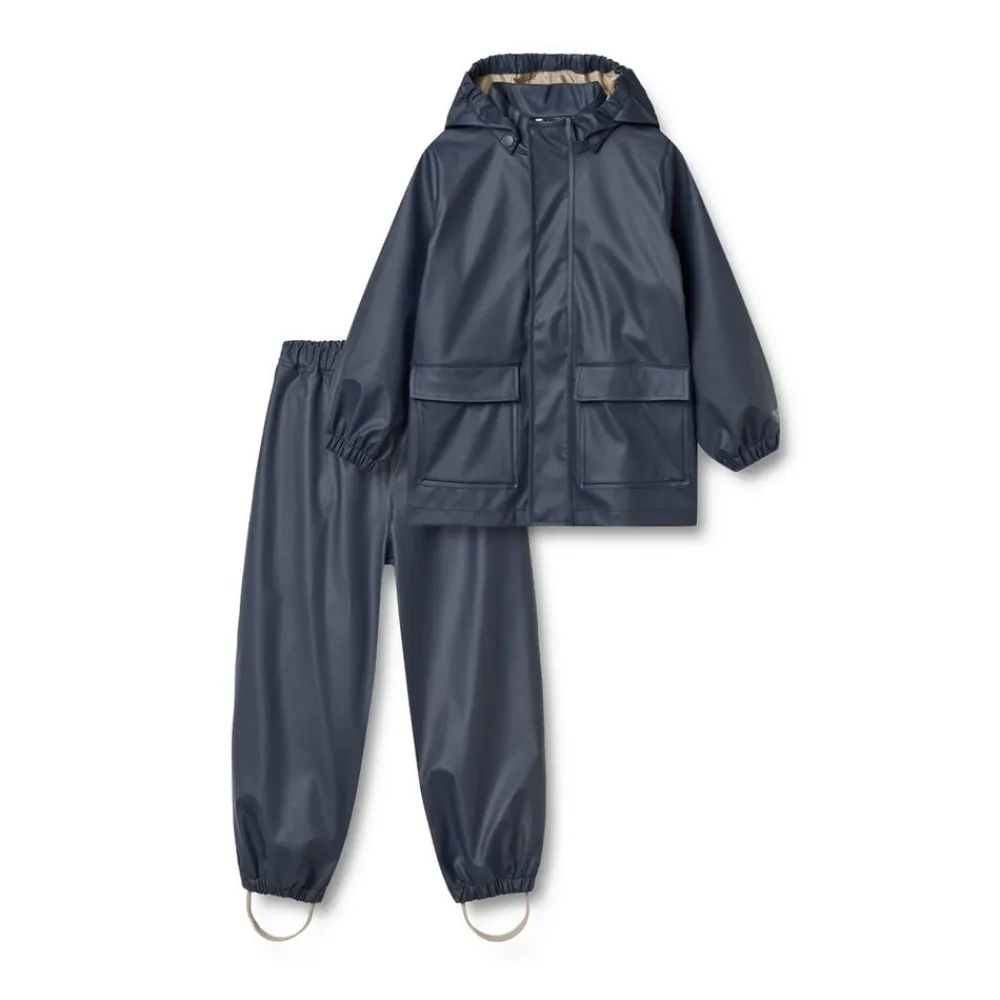 Praktisk regnsæt med matchende jakke og bukser til juniorbarnet. – Normal pasform – Reflekser – Ensfarvet Jakke: – Aftagelig og justerbar hætte – Påsyet lommer med flaplukning og trykknap Buks: – Elastik i taljen på bukserne – Elastik ved manchetter og forneden i kanten rundt – Justerbare gummistropper under fødderne Wheats praktiske regntøjssæt med matchende jakke og bukser en væsentlig del af dit barns garderobe. Sættet er lavet i et superblødt og let materiale, der gør det behageligt for dit barn at have på og bevæge sig rundt i. Det er vandtæt og smudsafvisende, og er derfor nemt at rengøre med en våd klud efter en mudret eftermiddag på legepladsen. Regnjakken har aftagelig hætte, elastik ved ærmerne og vandtæt lynlås med hagebeskytter. Bukserne har elastik i benene samt elastisk i taljen. Kombiner regntøjet med Wheats termotøj på de kolde dage for bedre isolering. Tekniske funktioner: – Vandsøjletryk: 8.000 mm – Vandbaseret PU – Alle sømme er vandtætte og svejset – Vandtæt lynlås – PFC-fri Sammensætning: – Standard 100 by OEKO-TEX® – 100% Genanvendt polyester med blød polyurethane coating