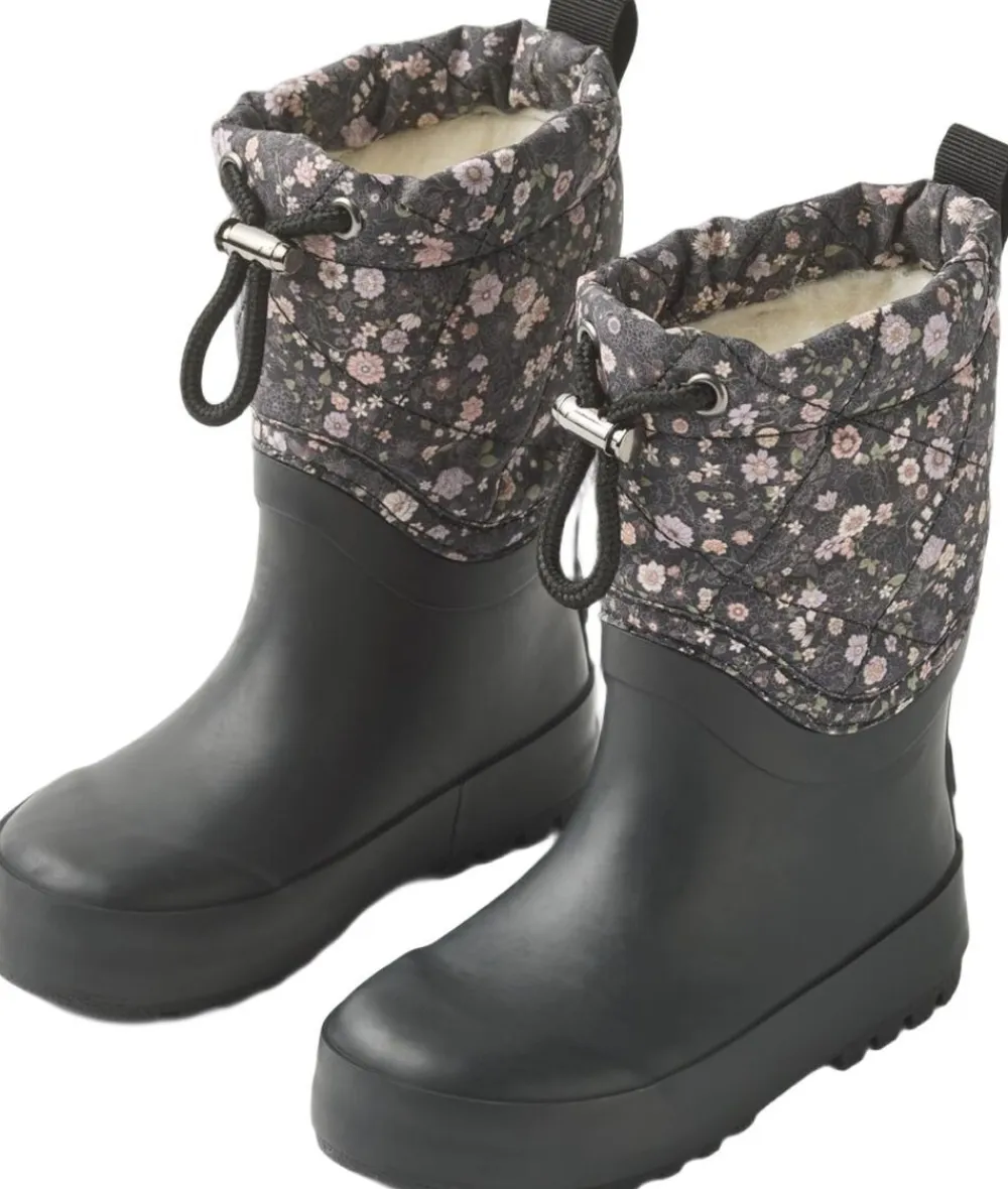 Cool termo gummistøvler til dit barn. – Uld- og genanvendt polyester foer – Blødt termoskaft – Refleks logo bagpå Termo gummistøvlerne er perfekte til det kolde og våde efterår, samt i vintersæsonen, når sneen smelter og jordbunden er muldret og våd. De har et behageligt og varmt uldfor og er lette for dit barn at træde i. For at holde de små fødder både varme og tørre, dækker vores gummisål hele foden og en del af anklen. Støvlen er lavet i en kombination af naturligt gummi med vandafvisende tekstil på skaftet. Materialet er meget holdbart og gør støvlerne bløde og fleksible for at sikre sden bedste komfort for dit barn. Indersålen er lavet af latex. Latex er et naturligt produkt, der er åndbart og fleksibelt med en trampolin effekt for mere behagelige skridt. Den er normal i størrelsen med en fast greb om dit barns fod. Anbefalet tilladelse til vækst: 1-1,5 cm Indvendig måling: Størrelse 22 = 13,9 cm Størrelse 23 = 14,6 cm Størrelse 24 = 15,2 cm Størrelse 25 = 15,8 cm Størrelse 26 = 16,4 cm Størrelse 27 = 17,2 cm Størrelse 28 = 17,8 cm Størrelse 29 = 18,6 cm Størrelse 30 = 19,0 cm Størrelse 31 = 19,9 cm Størrelse 32 = 20,6 cm Størrelse 33 = 21,2 cm Størrelse 34 = 21,8 cm Størrelse 35 = 22,4 cm — Ydermateriale: Gummi og vandafvisende tekstil Foring: 30% Naturuld/70% Genanvendt polyester Indersål: Blød latex indlægssål Ydersål: Gummi