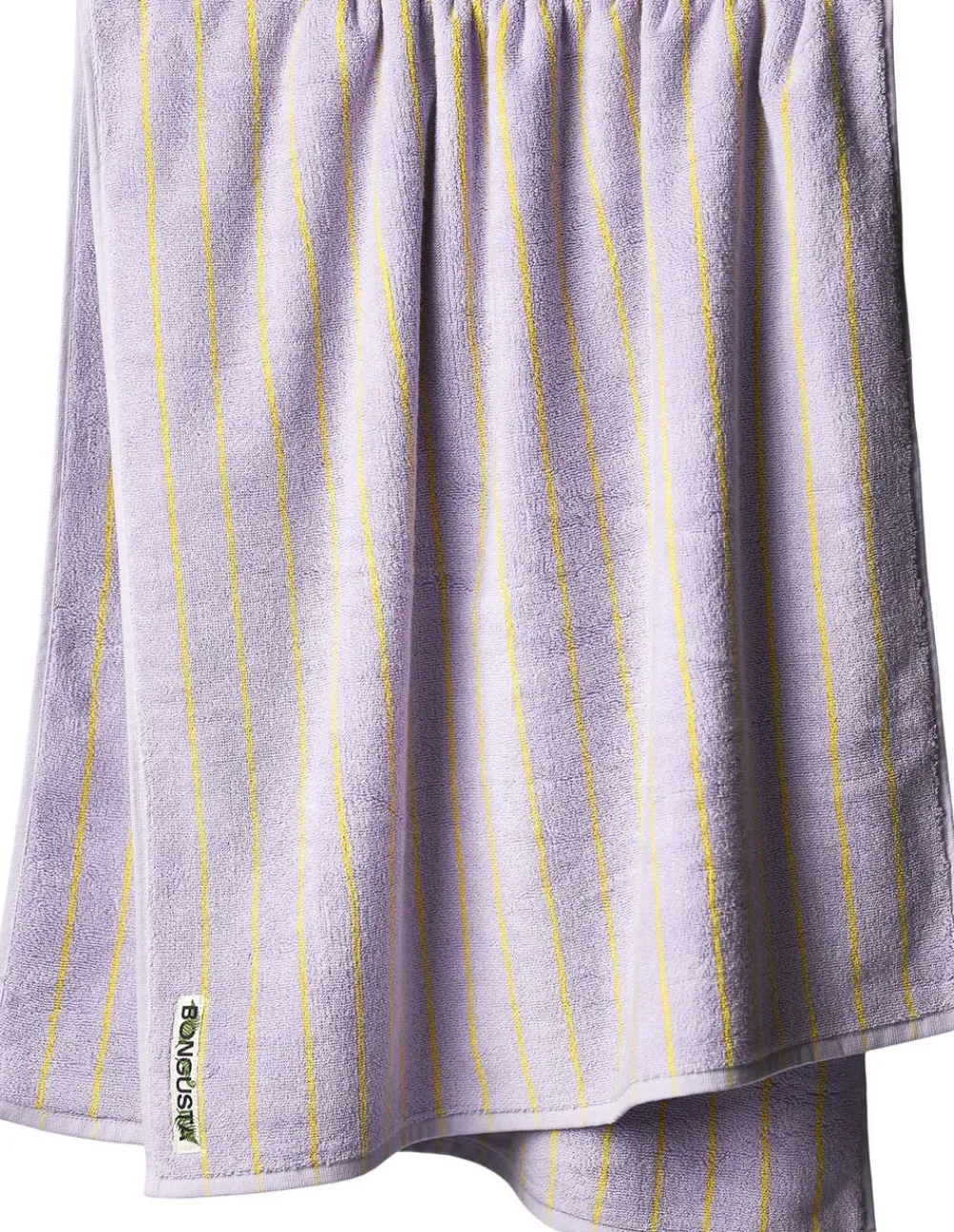 Naram gæstehåndklædet er et luksuriøst håndklæde. Det er lavet af 600 gsm kæmmet bomuld, der er OEKO-TEX® certificeret. Kæmmet bomuld_er af en højere, næsten silkeagtig kvalitet, som gør håndklædet mere farveægte og lækkert. Den dobbelt-trådede vævning og de ekstra lange bomuldsfibre gør håndklædet meget absorberende, holdbart og åh-så blødt. Naram gæstehåndklædet er ikke kun praktisk, det er også stilsikkert. Med et bredt udvalg af smukke farver ogklassiske striber kan du vælge lige det, der passer bedst til din personlige stil eller boligindretning._Det dekorative, broderede Bongusta brand-logo tilføjer et elegant touch til designet. Den tykke frottéoverflade sikrer en blød og behagelig følelse mod huden._Håndklædet har en smart løkke, der gør det nemt at hænge det op.Uanset om Naram gæstehåndklædet er til personlig brug eller tiltænkt som en gave, tilbyder det en luksuriøs oplevelse og spa-lignende blødhed.