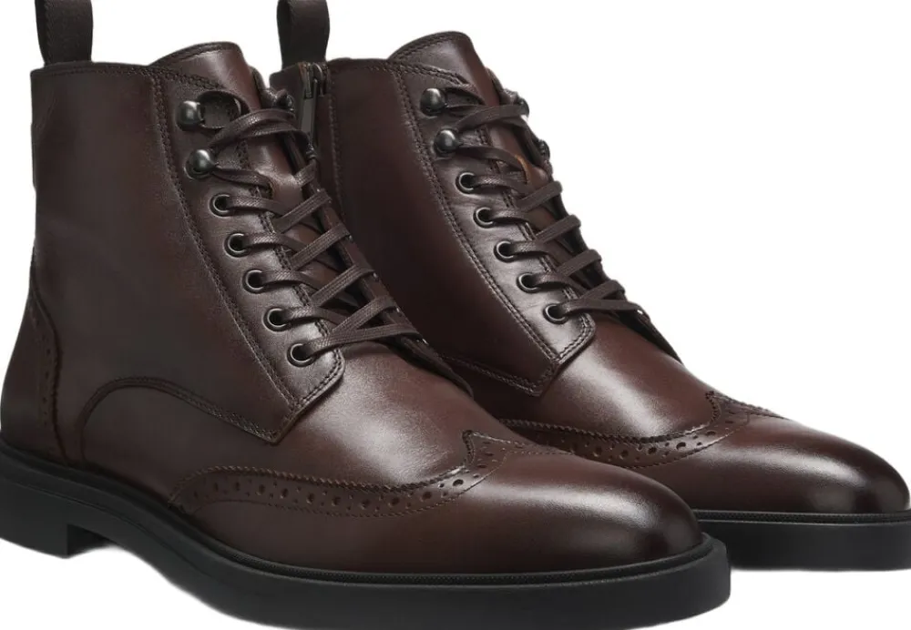 Med klassisk brogueing bliver disse BOSS herretøj-halvstøvler en hverdagsfavorit. Fremstillet i rigt læder med en diskret signaturstribedetalje. Dette produkt indeholder mindst 60 % bedre råmaterialer. Vi søger løbende efter mere ansvarlige måder at producere og færdiggøre vores produkter på. minimum 60 % af det læder, der bruges til at fremstille dette produkt, er indkøbt fra certificerede garverier
