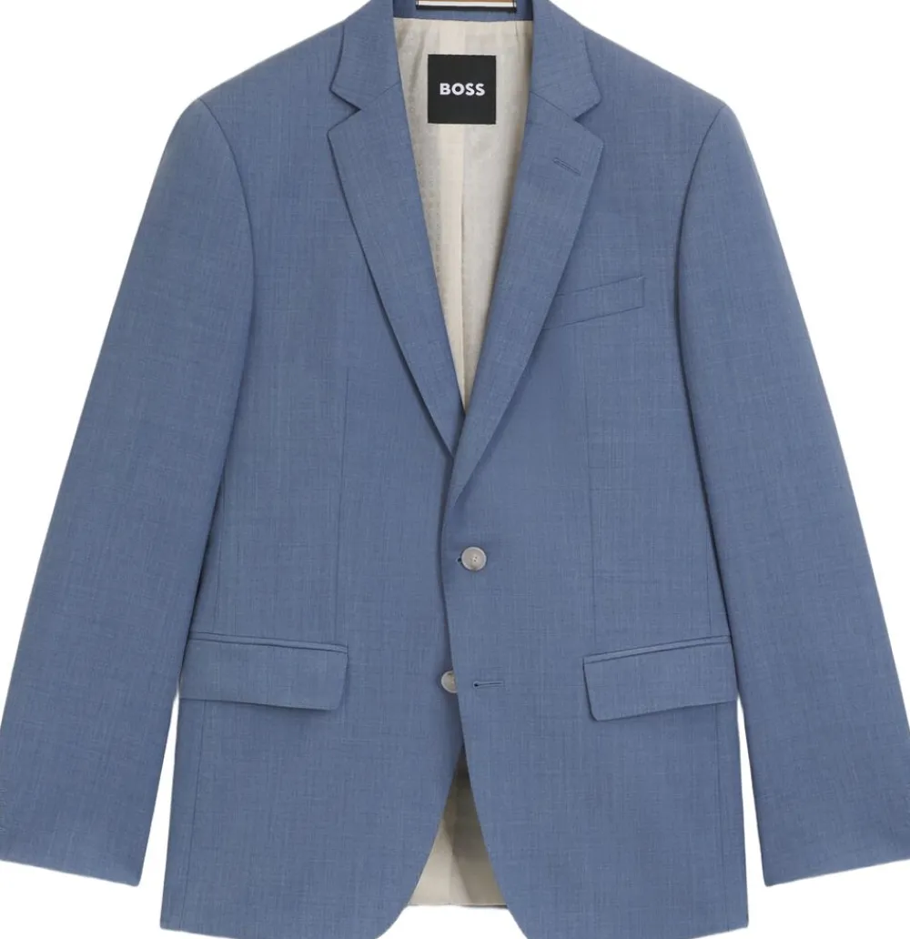 Denne BOSS BOSS herretøj-jakke giver tidløs elegance. Den er fremstillet i ny uld med sergevævning, har konstruerede skuldre og en slank pasform med naturlig stræk for lethed