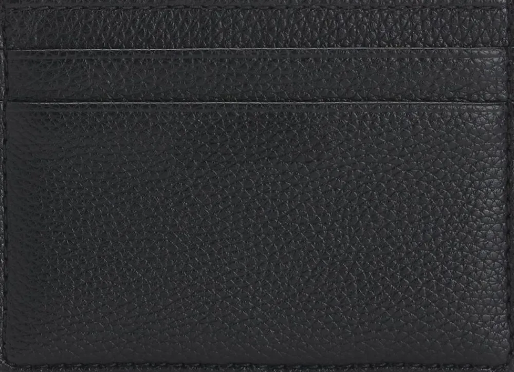 Korneret kortholder i kunstlæder med signaturdetaljer.