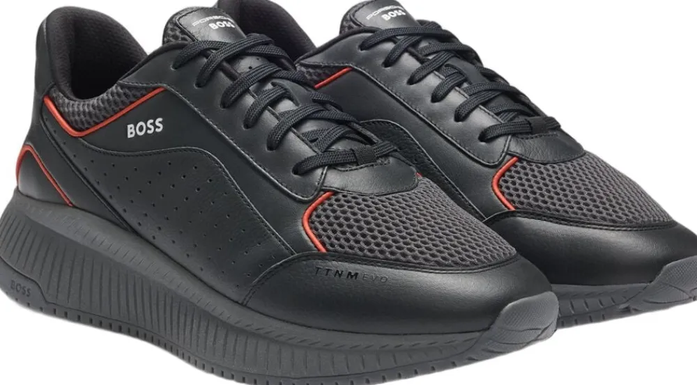 Disse TTNM EVO kondisko til mænd fra Porsche x BOSS mix er sporty, men raffineret, og de er fremstillet i et par par stykker almindeligt læder med åndbart mesh. Sæt på en let rillet ydersål. Speciel co-branding og kontrastbånd løfter dette par. En del af Porsche x BOSS-kollektionen, en kollektion af dristige stilarter, der indfanger BOSS holdning til kørsel og beslutsomhed. Dette produkt indeholder mindst 60 % bedre råmaterialer. Vi søger løbende efter mere ansvarlige måder at producere og færdiggøre vores produkter på. minimum 60 % af det læder, der bruges til at fremstille dette produkt, er indkøbt fra certificerede garverier.